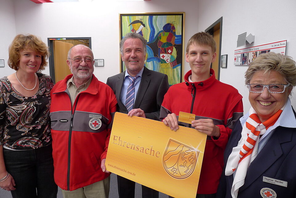 Euskirchen - Nur ein halbes Jahr nach Einführung der landesweit gültigen Ehrenamtskarte in der Stadt Euskirchen konnte Bürgermeister Dr. Uwe Friedl nun bereits die 100. Ehrenamtskarte ausgeben. Und zwar mit Christian Büser an einen Angehörigen des Roten Kreuzes im Kreis Euskirchen. Das meldet der „Blickpunkt am Sonntag“ in seiner jüngsten Ausgabe.