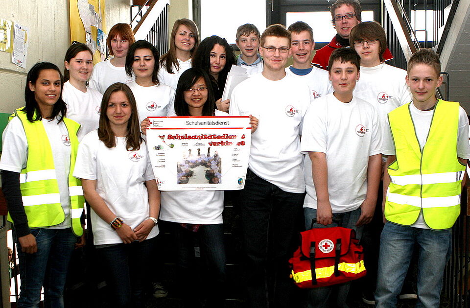 Die neuen Schulsanitäter heißen Marilena Reinhardt, Angelo Rosenfeld, Tim Simons, Clemens Stephany, Stefanie Baranowski, Arthur Rohrer, Caroline Jewski, Tim Rukowski und Gregor Krülov.