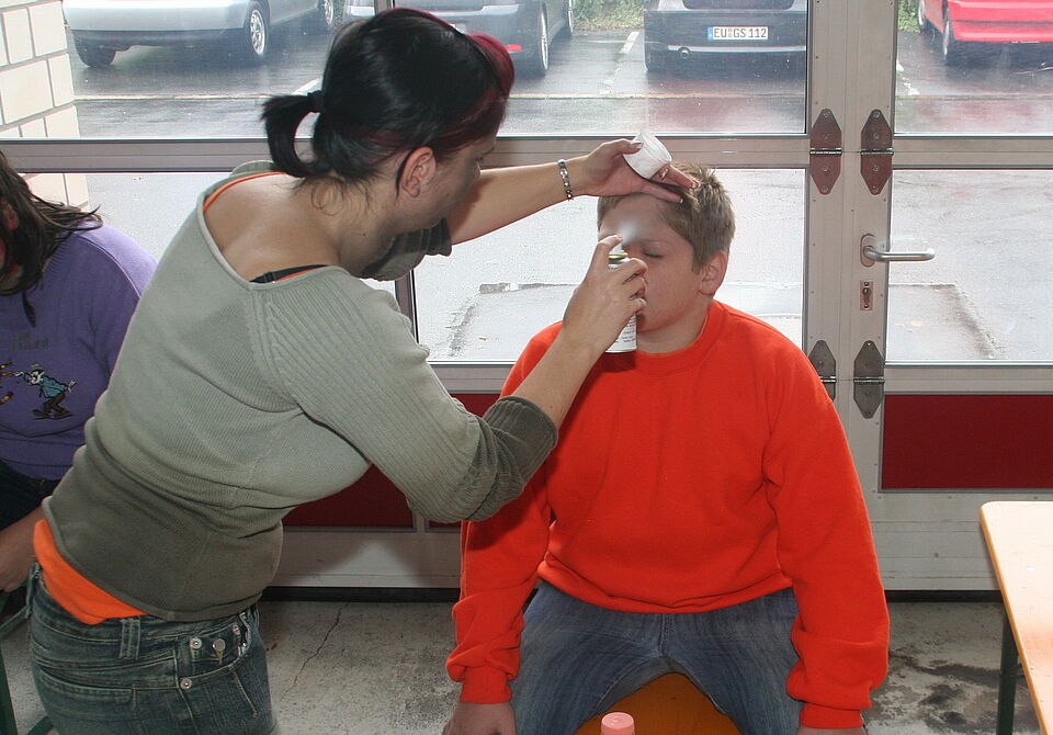 Es musste realistisch wirken, deshalb wurden für die Großübung des Rettungsdienstes im Kreis Euskirchen fast einhundert Verletztendarsteller geschminkt.