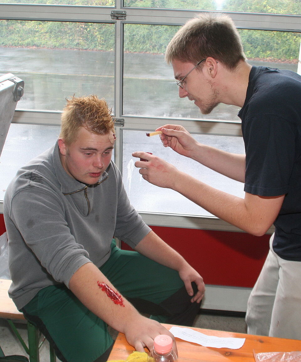 Auch bei dieser Übung des Rettungsdienstes im Kreis Euskirchen wurde wieder einmal klar, wie wichtig eine gute Darstellung der Verletzungen ist. So bekamen die eingesetzten Helfer des Roten Kreuzes, des Malteser-Hilfsdienstes, des Technischen Hilfswerks und der Feuerwehr ein optisch täuschend echtes Katastrophenbild verpasst und damit eine gute Voraussetzung für den Veklauf der gesamten Übung.
