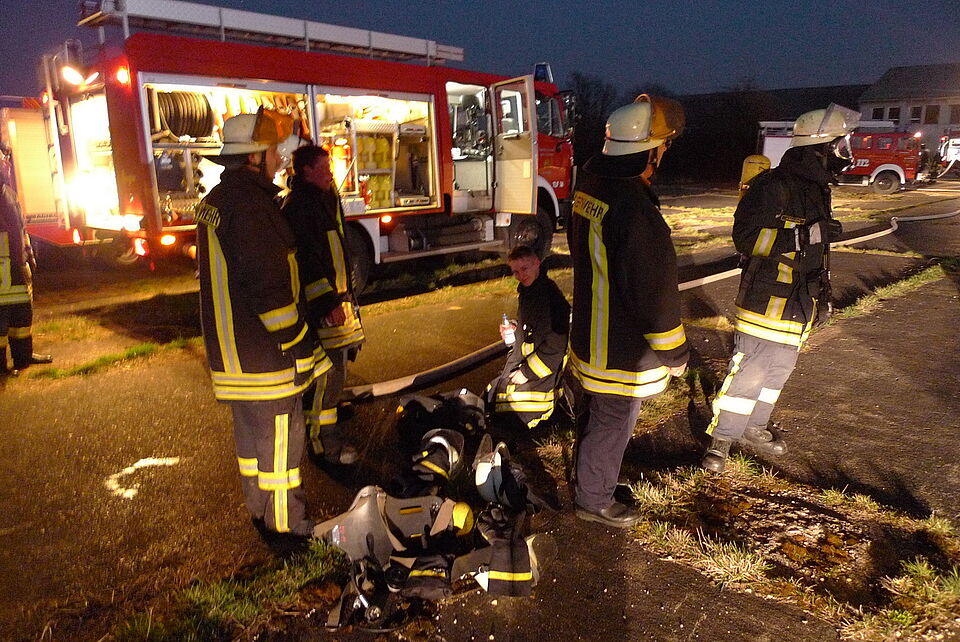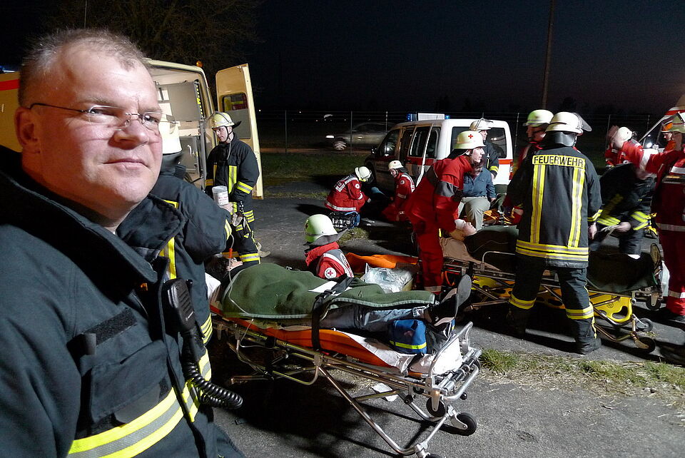 Der Zugführer des Löschzuges, Johannes Gebertz, ließ umgehend das Alarmstichwort für die Feuerwehr erhöhen und forderte weitere Unterstützung an. Auch der Rettungsdienst wurde aufgrund der Rückmeldung des ersten am vermeintlichen Unfallort eintreffenden Fahrzeuges verstärkt.