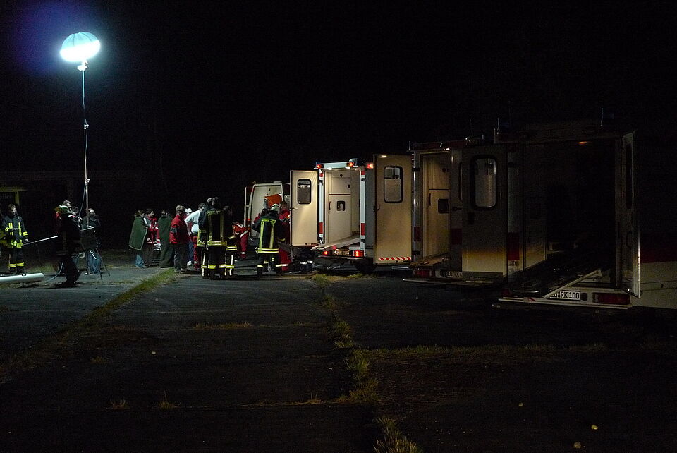 Bild DRK ZR | Die bereitstehenden Rettungsfahrzeuge erzeugten ein gespenstisches Bild.