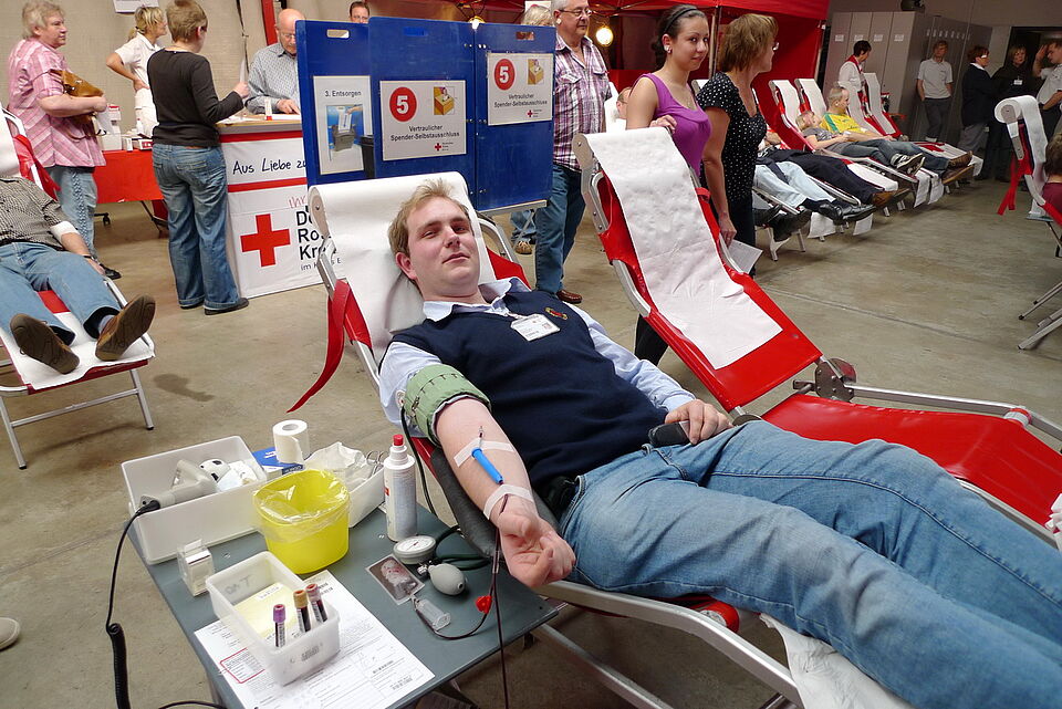 302 Blutspender, darunter 21 Erstspender, ließen sich gestern am Rotkreuz-Zentrum in Euskirchen anzapfen, um die "lebenswichtigen Saft" Blut zu spenden.