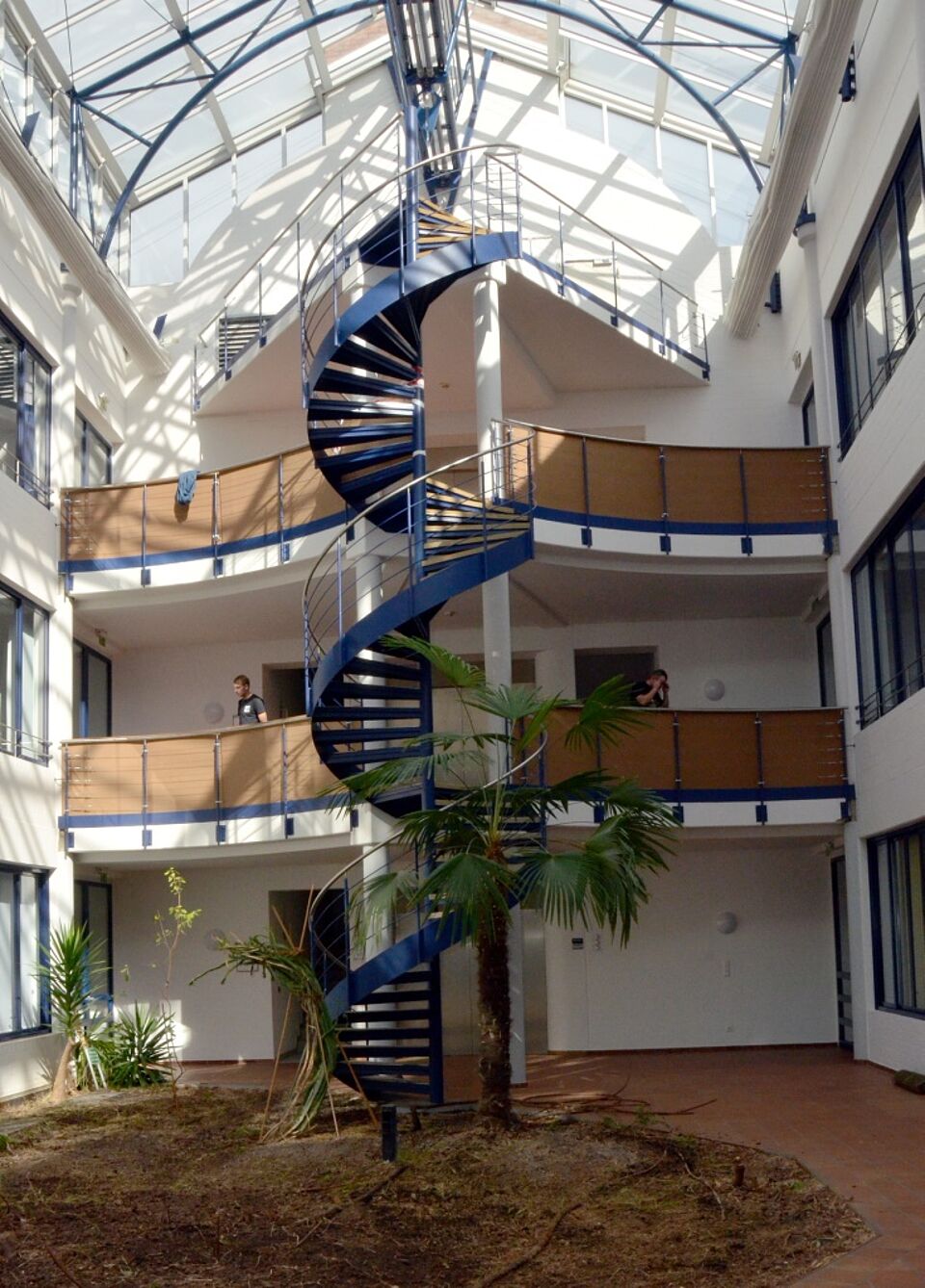 Foto: Felix Kern/pp/Agentur ProfiPress | Das ehemalige DHL-Verwaltungsgebäude von innen. Die letzten Umbauten, unter anderem um die Brandschutzauflagen zu erfüllen, laufen noch.