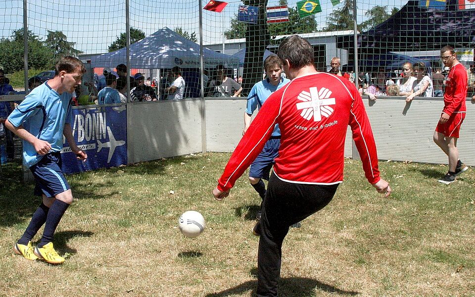 Integration und Teilhabe ist das Motto des Tages, und nirgendwo wurde dies bei der 9. Auflage deutlicher als beim bei den Besuchern und Aktiven besonders beliebten Kleinfeld-Soccerturnier. Wer hier die meisten Tore schießt, ist schlicht der Sieger – ob das Team aus Menschen mit oder ohne Behinderung besteht, ist egal. Neun Mannschaften waren in diesem Jahr mit dabei, die für die Spiele Ländernamen teilnehmender Mannschaften der aktuellen Frauenfußballweltmeisterschaft in Kanada trugen. Schließlich ist auch Frauenfußball, verglichen mit der Tradition der Männermannschaften, eine vergleichsweise junge Form gelungener Integration.