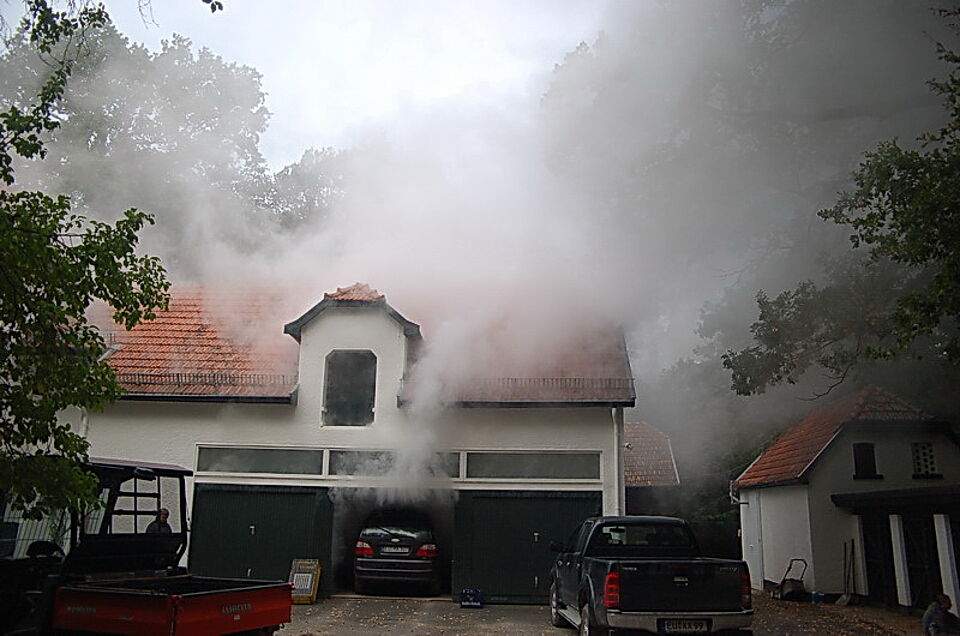 Bild DRK SN | Dichter Brandrauch drang aus der Garage am Kirchheimer Forsthaus.