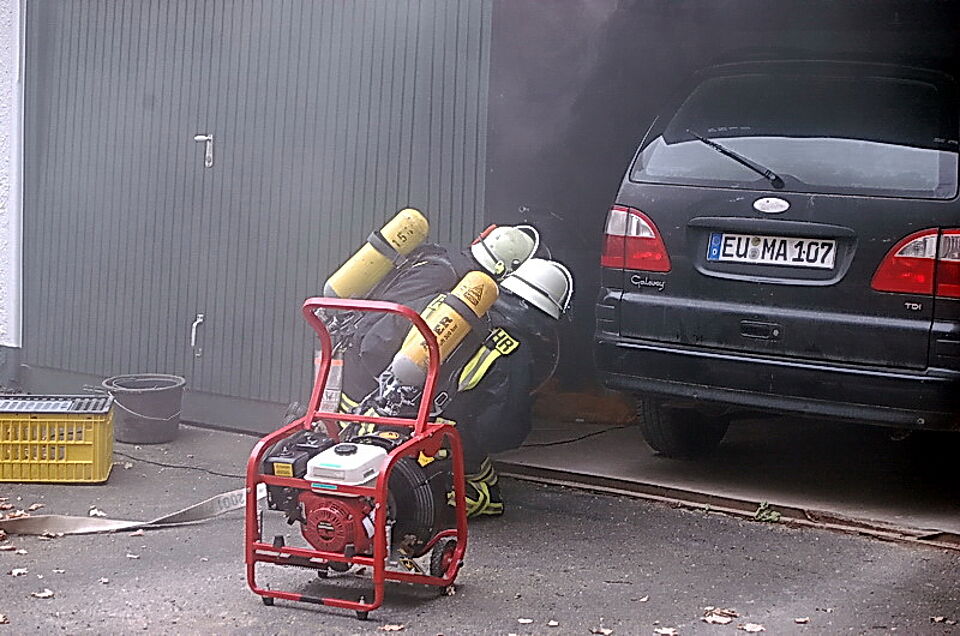 Kirchheim - Am frühen Sonntagmorgen brannte eine Garage auf dem Gelände des Forsthauses Buchholz an der Euskirchener Steinbachtalsperre - Zum Glück war es nur eine Übung!