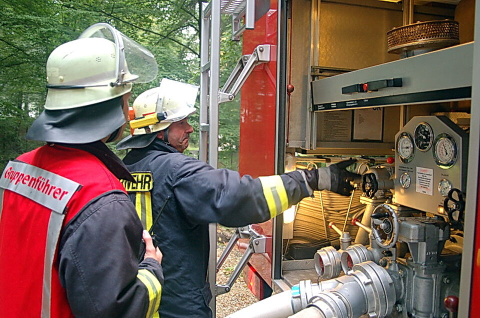 Bild DRK SN | Löschzugführer Peter Jonas (r) aus Palmersheim bei der Einweisung eines Gruppenführers.