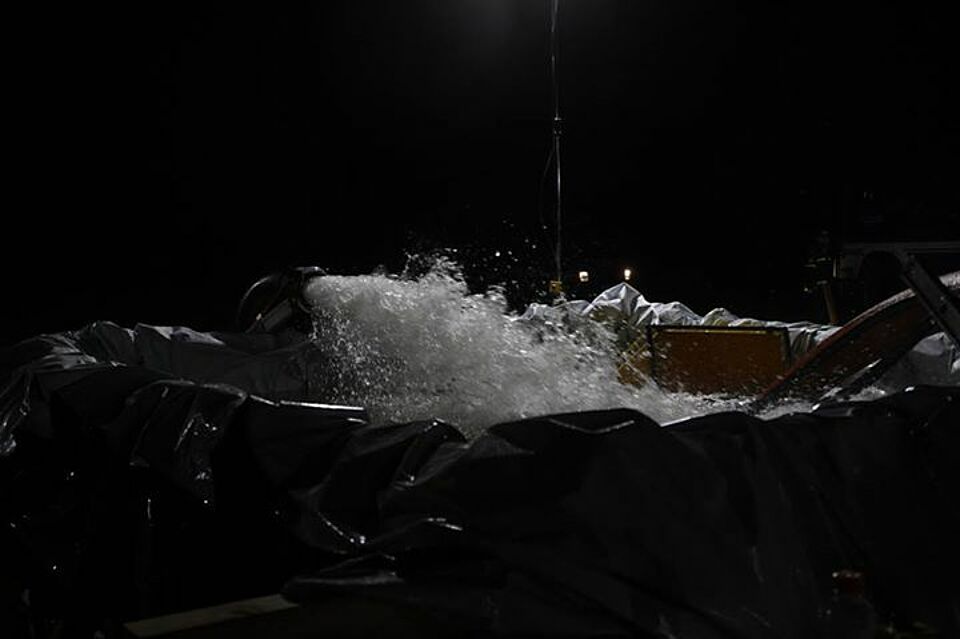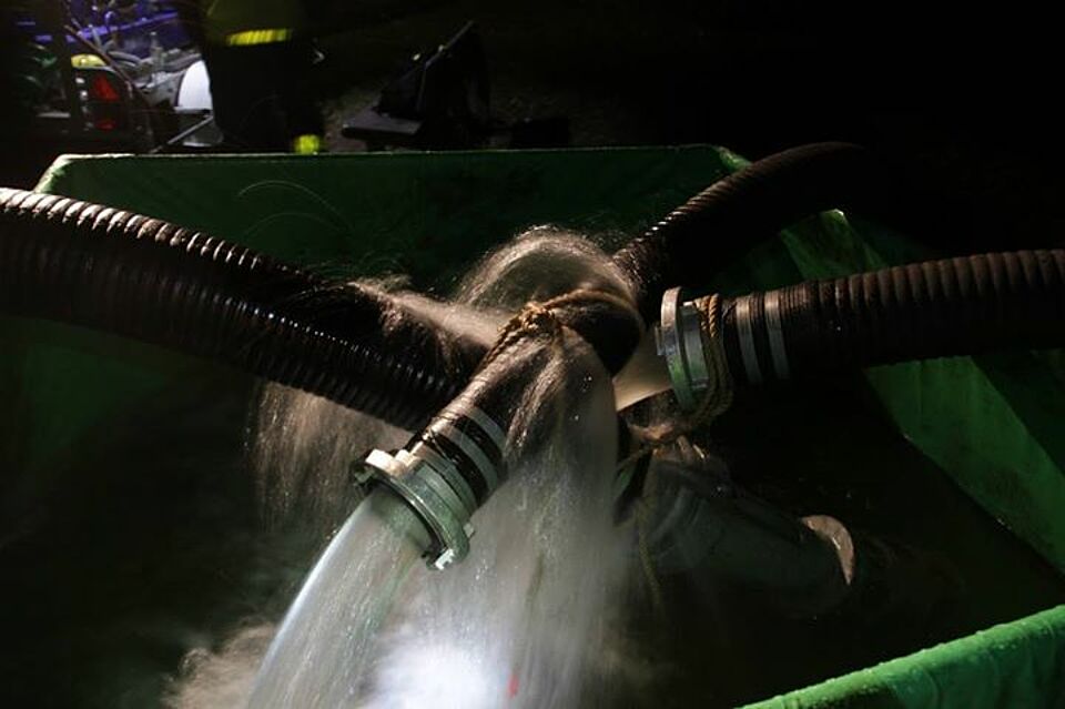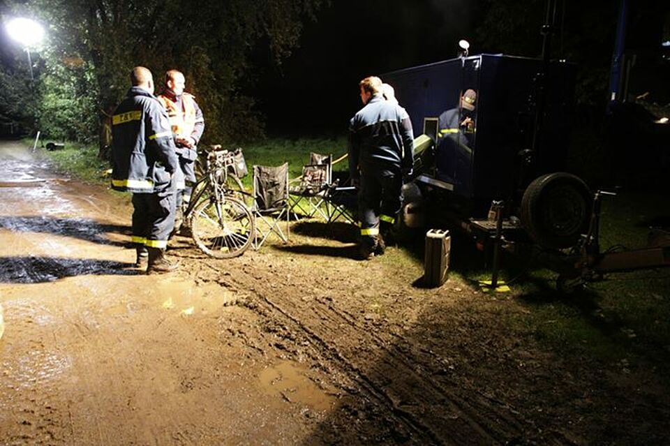 Die gesamte Nacht über wurde die Wasserförderstrecke in Betriebe gehalten und im Schichtsystem von den Helfern betreut. Auch die Beleuchtung der gesamten Wegstrecke wurde aufrechterhalten, um die Sicherheit der Einsatzkräfte zu gewährleisten.