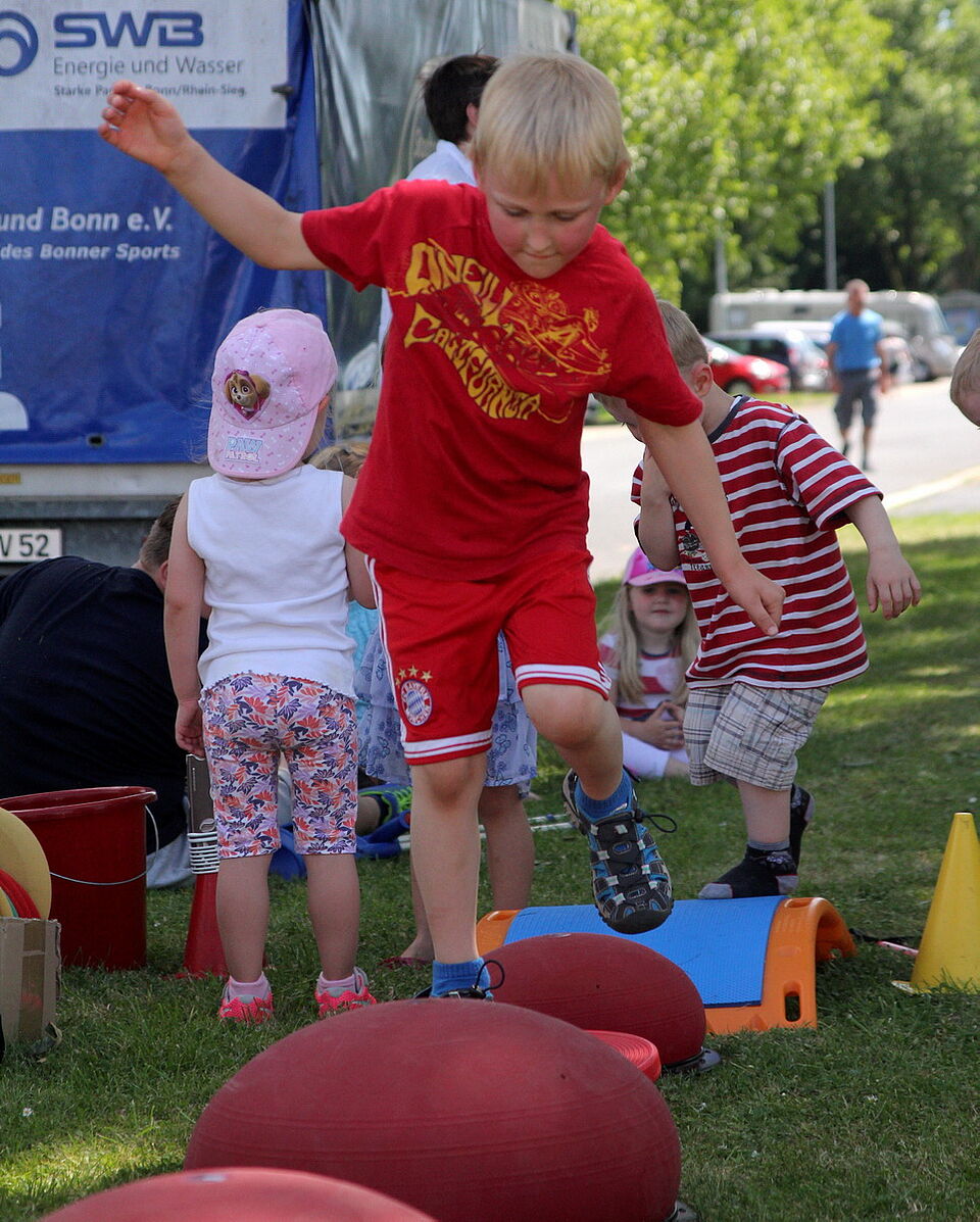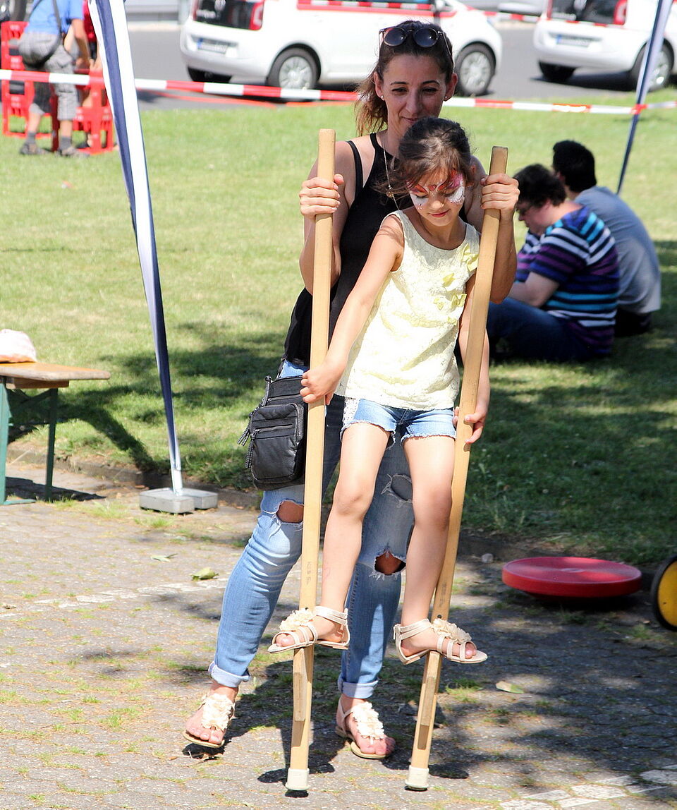 Das ist auch das Prinzip der beliebten Veranstaltung, die nun zum elften Mal vor dem Rotkreuzzentrum hinter dem Kreishaus in Euskirchen über die Bühne ging. Hier wird jeder gleich behandelt, der „Tag der Begegnung“ ist gelebte Inklusion und Integration. Hier balancieren Menschen mit Down-Syndrom ebenso über ein gespanntes Seil, neumodisch Slackline genannt, wie Menschen ohne Behinderung. Hier essen Menschen, gleich welcher Herkunft, gemeinsam unter dem Dach des Rotkreuzzentrums Pommes und Waffeln. Hier hat man gemeinsam Spaß, man sonnt sich, man erholt sich, jeder ist, wie Simon Jägersküpper es gesagt hat, gleich.