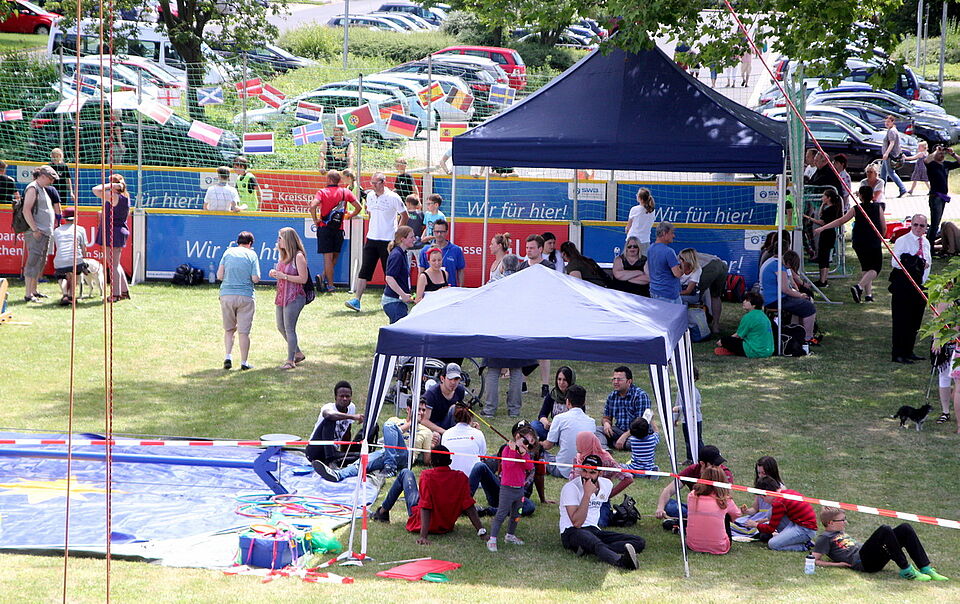 Vor dem und im Rotkreuzzentrum in Euskirchen fand zum elften Mal der „Tag der Begegnung“ statt – Spaß und Miteinander von Menschen jeglicher Hautfarbe, ob mit oder ohne Behinderung, standen im Vordergrund