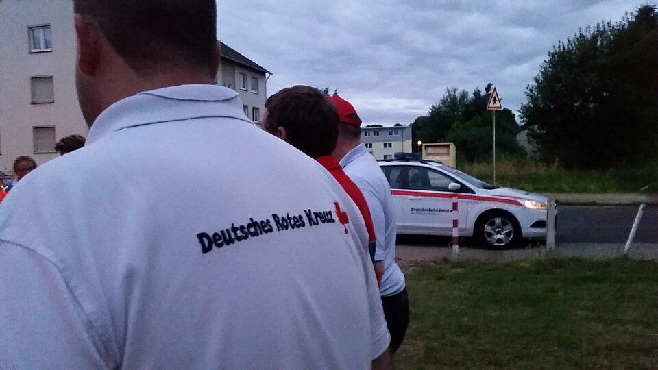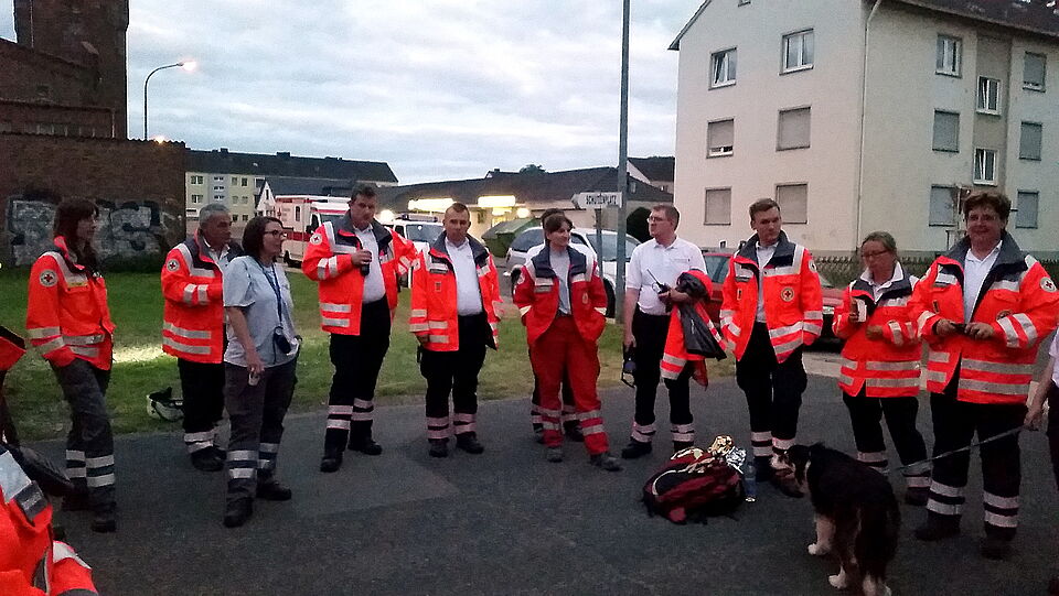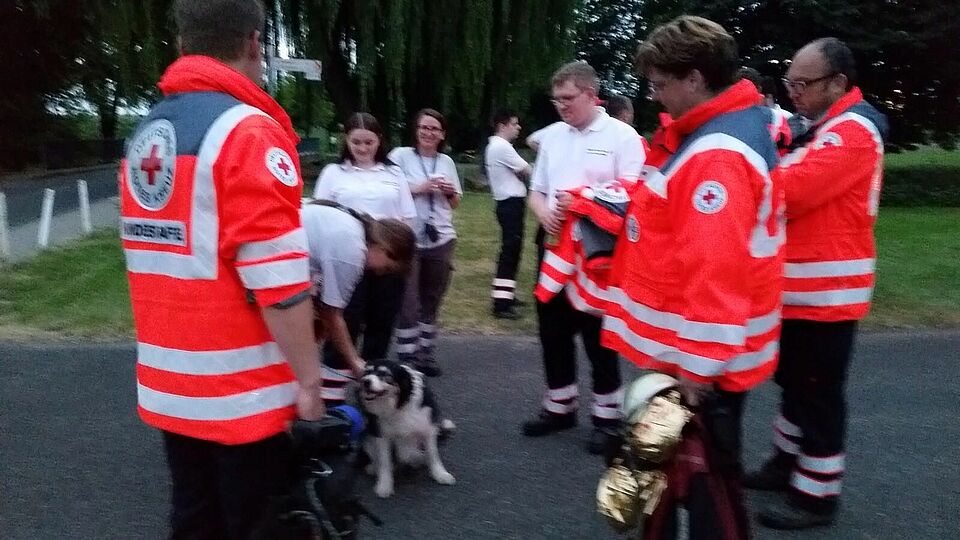 Mit anhaltendem Bellen machte „Jessie“ auf ihren Erfolg aufmerksam, über Funk meldete Hundeführerin Birgit Poschen den Fund. „Der Mann war ansprechbar, und ihm ging es den Umständen entsprechend gut“, so Julia Tiede. Die Besatzung eines bereitstehenden DRK-Rettungswagens kümmerte sich um den Mann, dessen Erstversorgung schon Birgit Poschen und Manuela Rusterberg übernommen hatten.