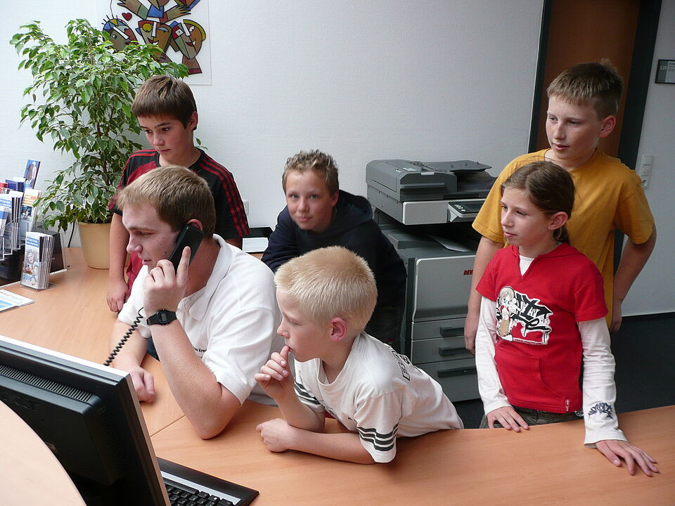Bild JRK EU | Beim Chef im Büro schauen sich die jugendrotkreuzler an, wie die Rotkreuz-Homepage bearbeitet wird.