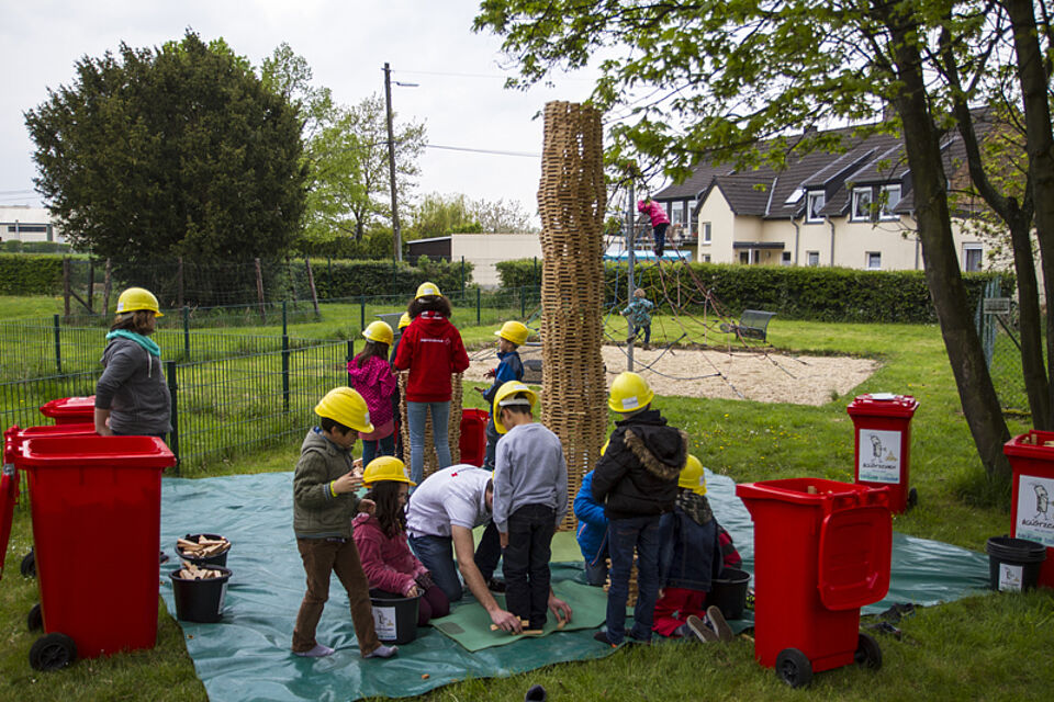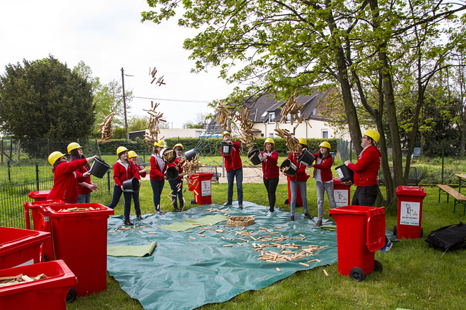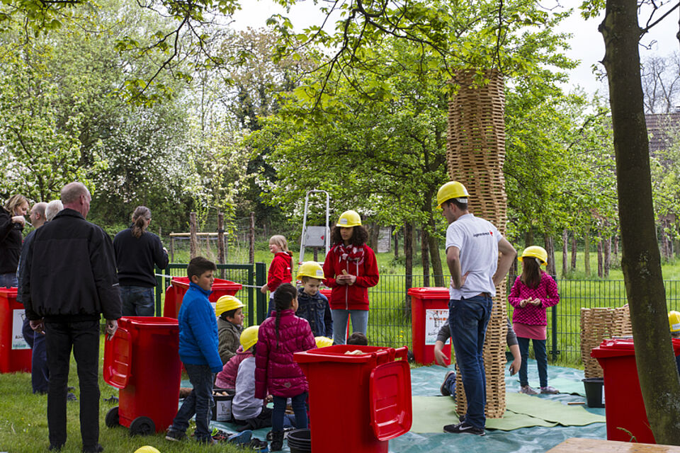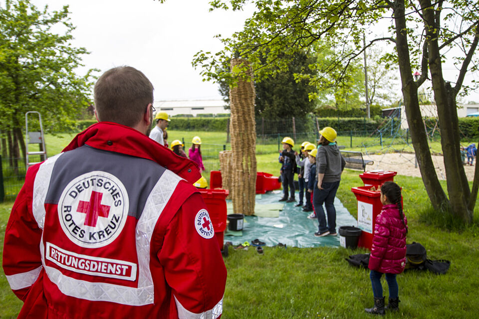 Bild DRK JS | Bei Karlo Klötzchen wurden unter fachmännischer Anleitung junge Besucher in hohe Türme eingebaut.