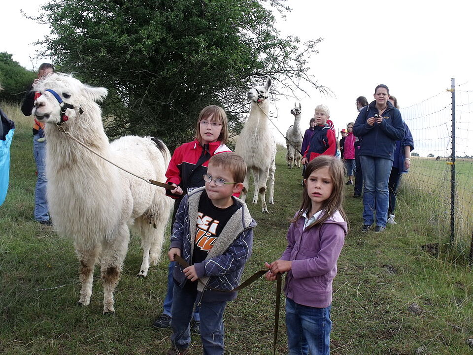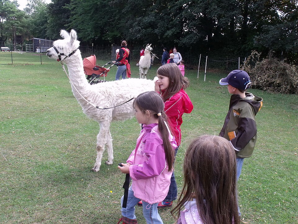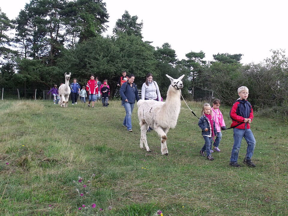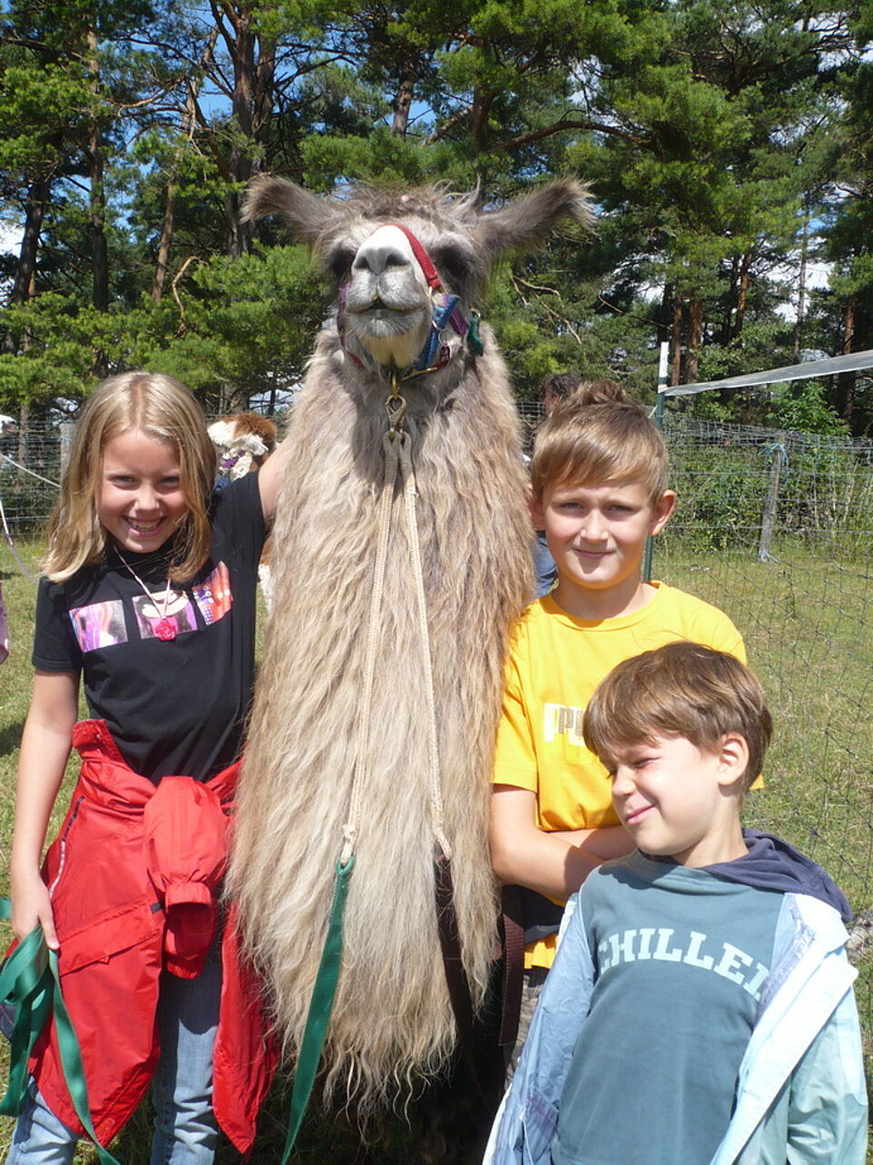 Einer dieser vielen Ausflüge, die zum Programm gehören, führt die Kinder hautnah zu richtigen Lamas...