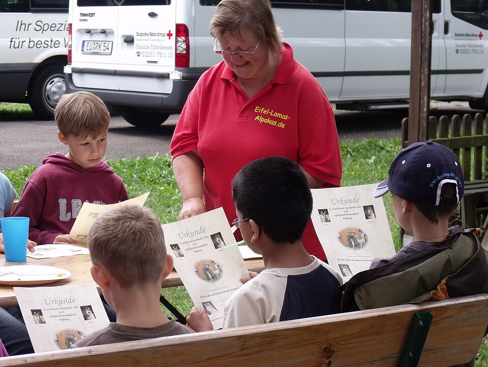 Bild DRK EU | Da alle so gut mit den Tieren zurechtkamen, erhält jedes Kind noch eine Urkunde.