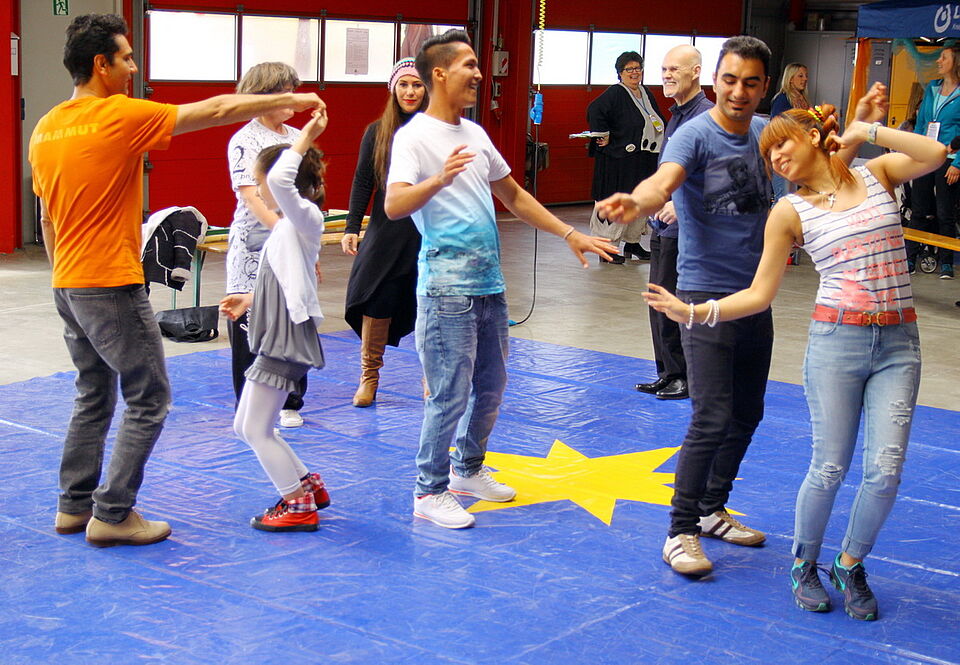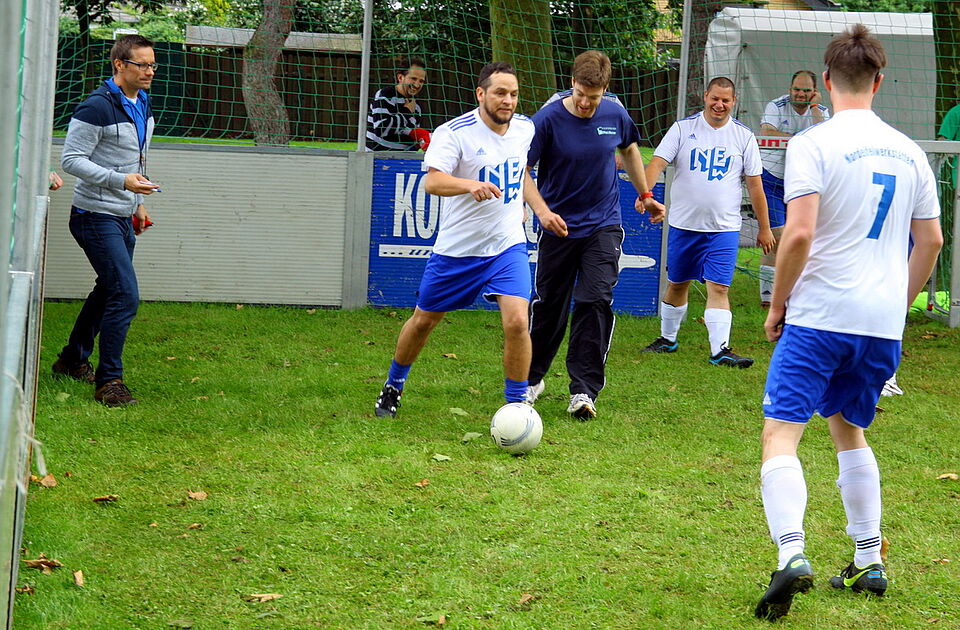 Natürlich durfte auch König Fußball nicht zu kurz kommen – immerhin hatte die WM 2006 in Deutschland den Anlass für das erste Begegnungsfest geliefert. Es wurde ein inklusives Kleinfeld-Turnier mit 14 Mannschaften ausgespielt. Die Teams wurden in zwei Gruppen, sortiert nach Schulen und Institutionen, aufgeteilt und spielten untereinander um den Gruppensieg. Am Ende gab es zwei Sieger, die sich über einen Pokal freuen konnten.