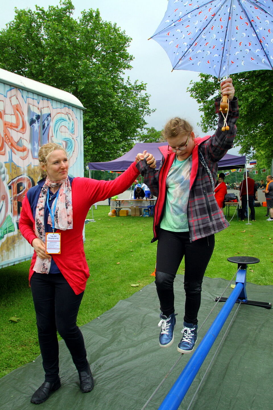 „Es werden viele Dinge geboten, die man einfach und ohne Regeln umsetzen kann“, erklärte Markus Strauch vom Kreissportbund. Die Besucher können an den Ständen einfach loslegen, so Strauch. So gab es einen Stand an dem man Dosenwerfen konnte, es gab einen Mitmach-Zirkus, Bogenschießen, außerdem wurden über den ganzen Tag Mitmachangebote vom Tanz bis hin zu Yoga präsentiert.