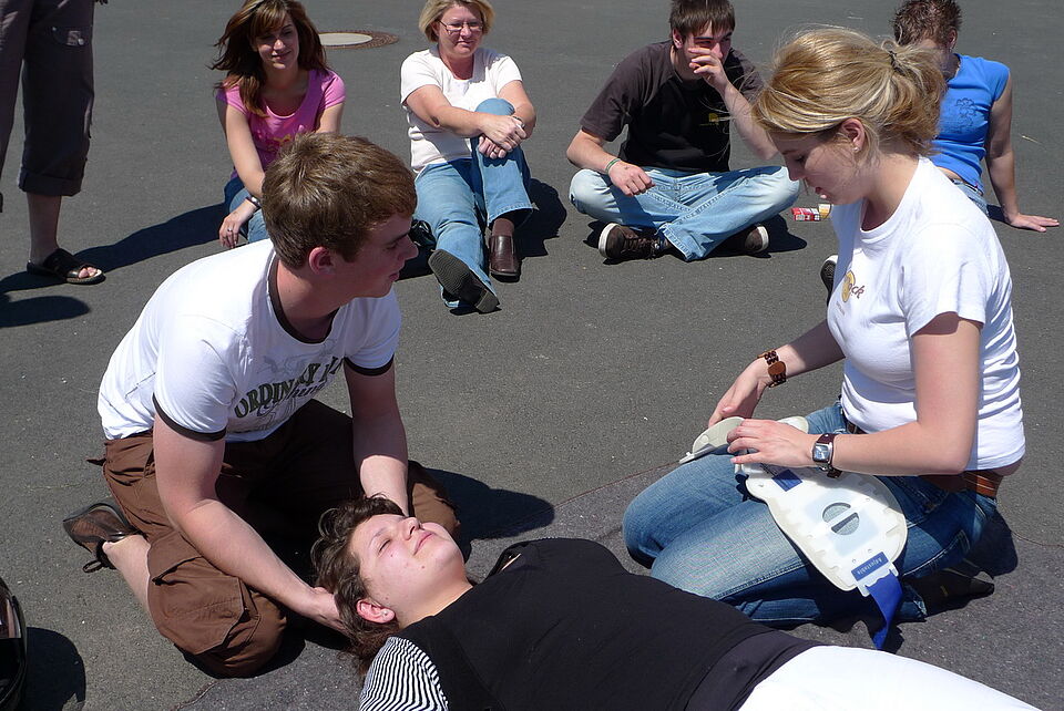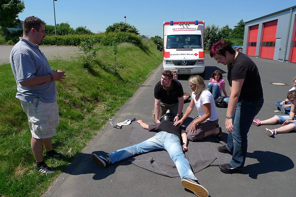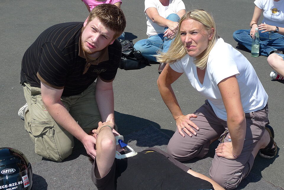 Bild DRK ZR | Wie verschaffe ich mir schnell einen Überblick, wer hilft dem Opfer und wer setzt den Notruf ab? Diese Maßnahmen lernt schon jeder Fahranfänger in den Kursen der Ersten Hilfe oder bei den lebensrettenden Sofortmaßnahmen.