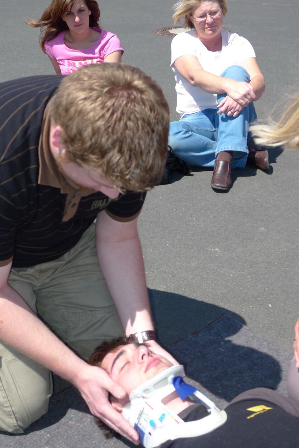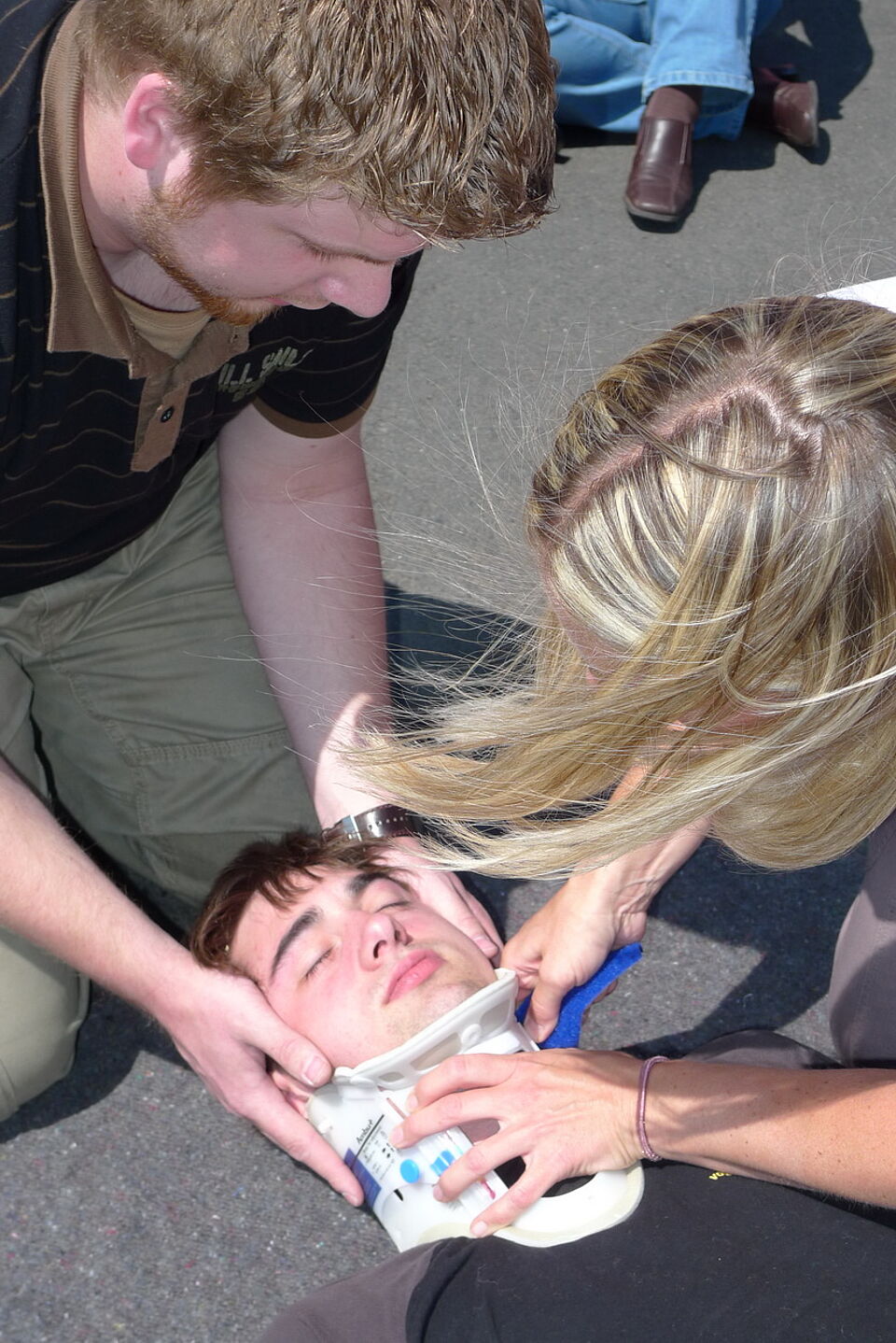 Bild DRK ZR | Da, wo die Maßnahmen der Ersten Hilfe aufhören, geht es im Rettungsdienst natürlich weiter. Mit einem "stiffneck" wird die Kopfhaltung fixiert, um weitere Schäden zu vermeiden.