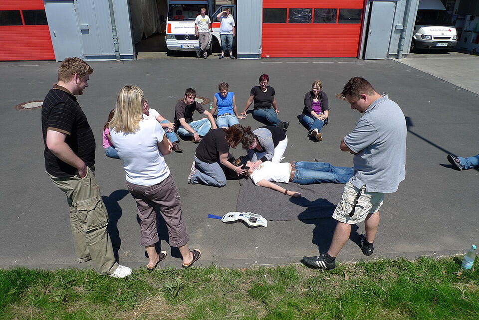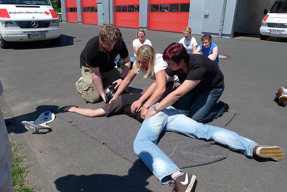 Bild DRK ZR | Alle Teilnehmerinnen und Teilnehmer üben die Maßnahmen, bis alles perfekt klappt.