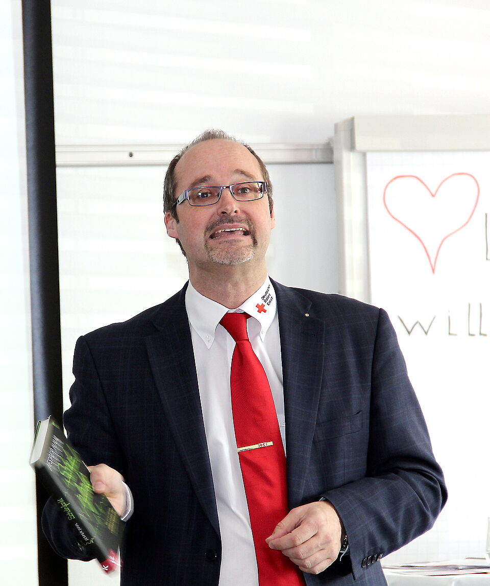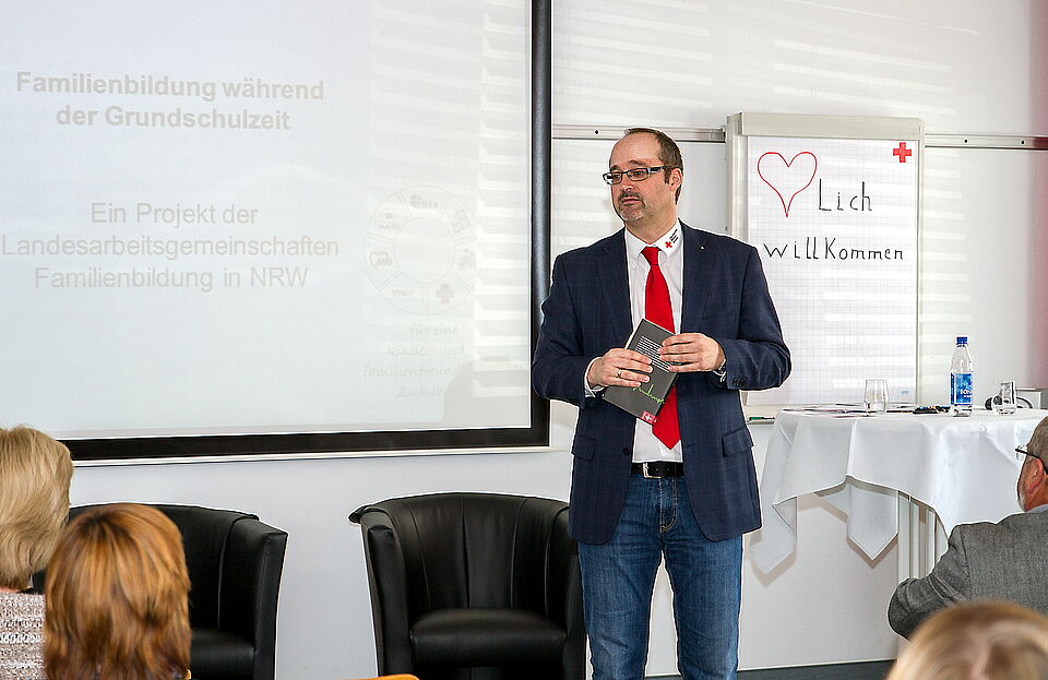Ilona Raabe, die Chefin der Familienbildung beim Roten Kreuz im Kreis Euskirchen und Projektverantwortliche auch auf Landesverbandsebene beim DRK Nordrhein sowie Mitarbeiterin bei den Landesarbeitsgemeinschaften der Familienbildung in NRW, hatte als prominenten Gesprächspartner Mathias Voelchert, den Gründer und Leiter der bundesweit tätigen „Familienwerkstatt Familylab.de“ aus München eingeladen.