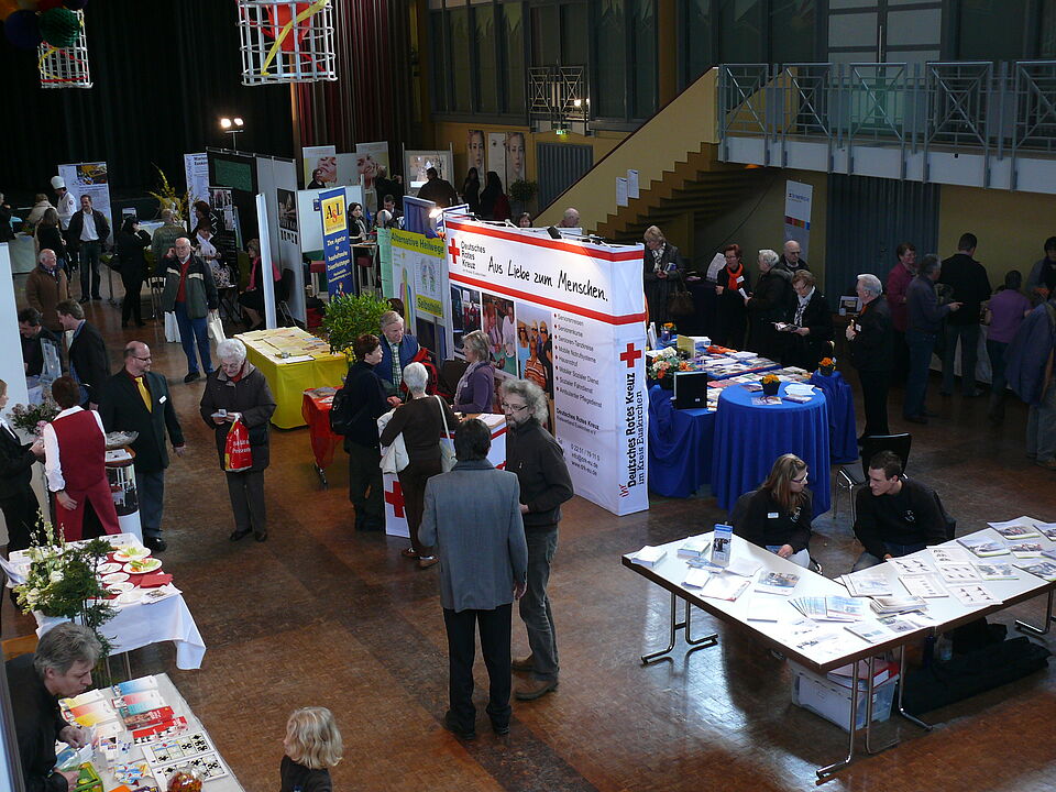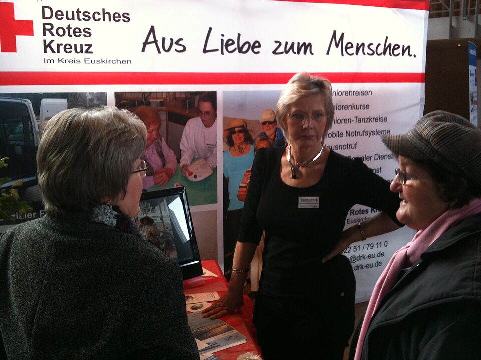 Das Rote Kreuz war dieses Jahr bereits zum dritten Mal mit ihrem neuen Messe- und Informationsstand im Einsatz. Monika Dormagen und Patrick Dost informierten die zahlreichen Messebesucher zu den Themen Seniorenreisen, Mobile Notrufsysteme und den vielseitigen Rotkreuz - Angeboten im Kreis Euskirchen.