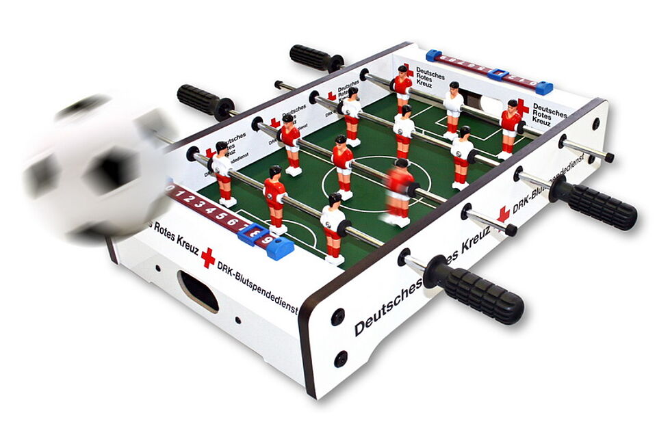 Kreis Euskirchen - Aktuell zur bevorstehenden Fußball-Weltmeisterschaft verlost das Rote Kreuz im Kreis Euskirchen pro öffentlichem Blutspendetermin ein Mini-Kickerspiel. Und zwar vom 1. April bis zum 30. Juni.