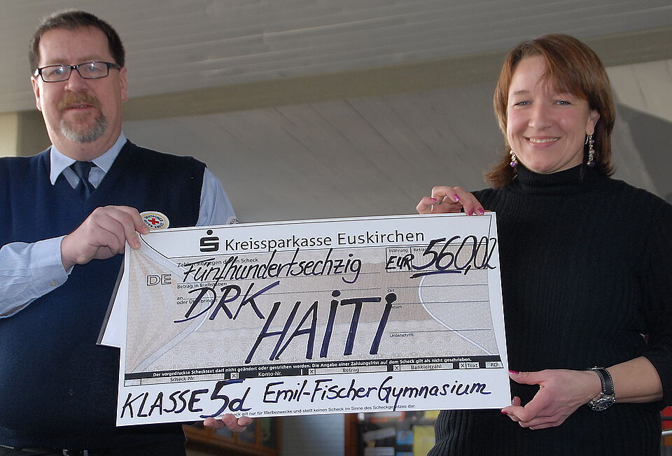 „Haiti war schon vor dem Erdbeben ein sehr armes Land“, erklärte der Euskirchener Rotkreuz-Funktionär den Emilianern: „Und 560 Euro sind in Deutschland schon viel Geld, aber in Haiti bedeutet diese Summe Reichtum.“ Die jungen Euskirchener Gymnasiasten hätten mit ihrer Aktion etwas Großartiges vollbracht, auf das sie stolz sein könnten, sagte Spilles.