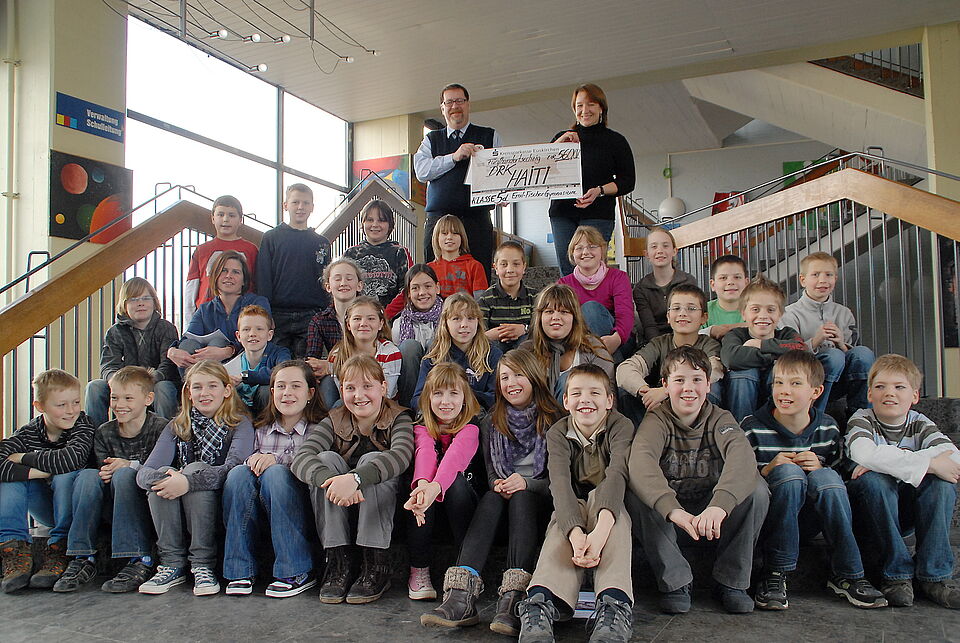 Insgesamt kamen 560,02 Euro für den guten Zweck zusammen. Darin sind auch selbstgebastelte Embleme enthalten, die die Schüler im Rahmen der Aktion „Faustlos“ gegen Gewalt selbst gebastelt und für wenige Cent an Schulkameraden verkauft hatten. Die Anregung zu dieser Aktion bekamen sie im Politikunterricht.