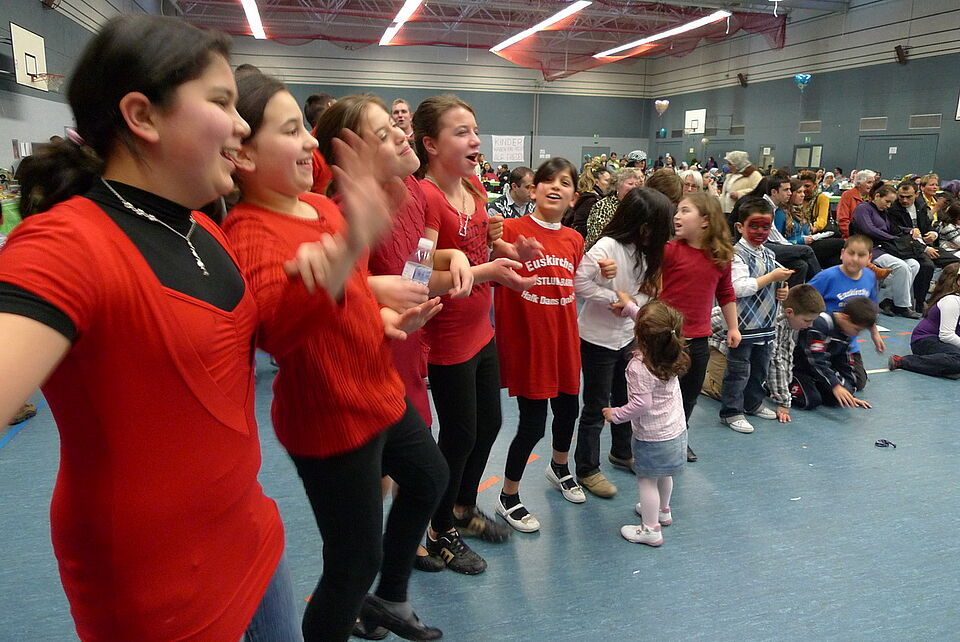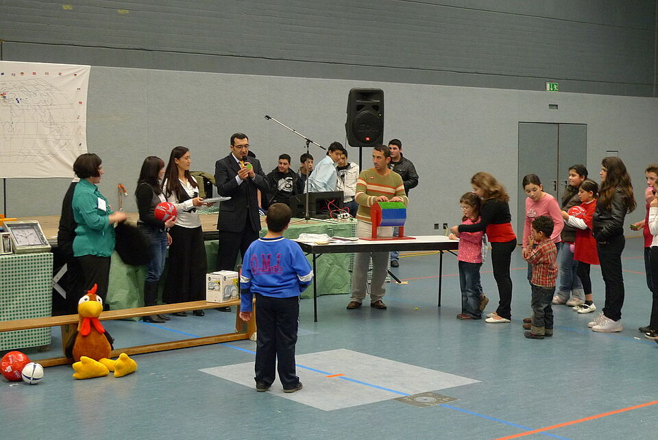 Jung und Alt fanden den Weg in die Halle und feierten gemeinsam bei einem tollen internationalen Rahmenprogramm zum Thema Frieden. Mehrere Gruppen der Euskirchener Kindergärten und Schulen boten Gesangs- und Tanzeinlagen dar, die kleineren Besucher erfreuten sich am Kinderschminken, am Ostereier-Bemalen, an der Tombola oder am Animationsprogramm eines Clowns.