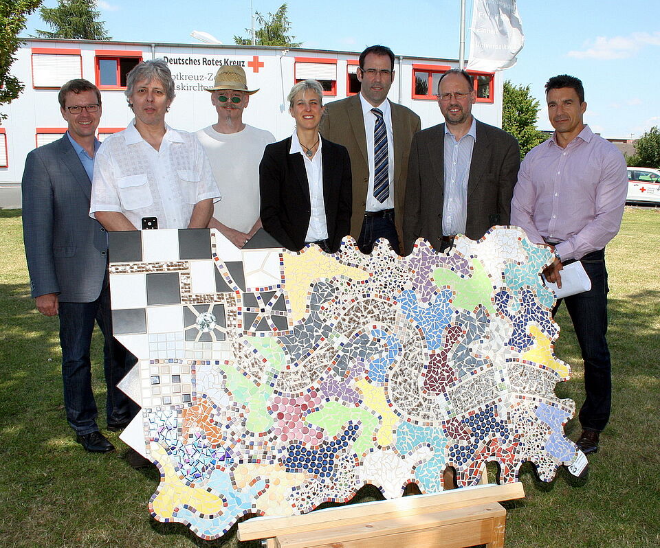 Stellvertretend für alle anderen teilnehmenden Künstler präsentierte Stefan Busch beim Nachtreffen sein Mosaik, das er mit Kindern beim Friedensfest gefertigt hat. Dieses Kunstwerk soll auf einer Wanderausstellung an verschiedenen Stellen in der Stadt gezeigt werden, um die Erinnerung an die Ziele des Friedensfestes bis zur nächsten Veranstaltung aufrecht zu halten. Erste Station ist seit dem 1. Juli das Foyer des Kreishauses am Jülicher Ring.