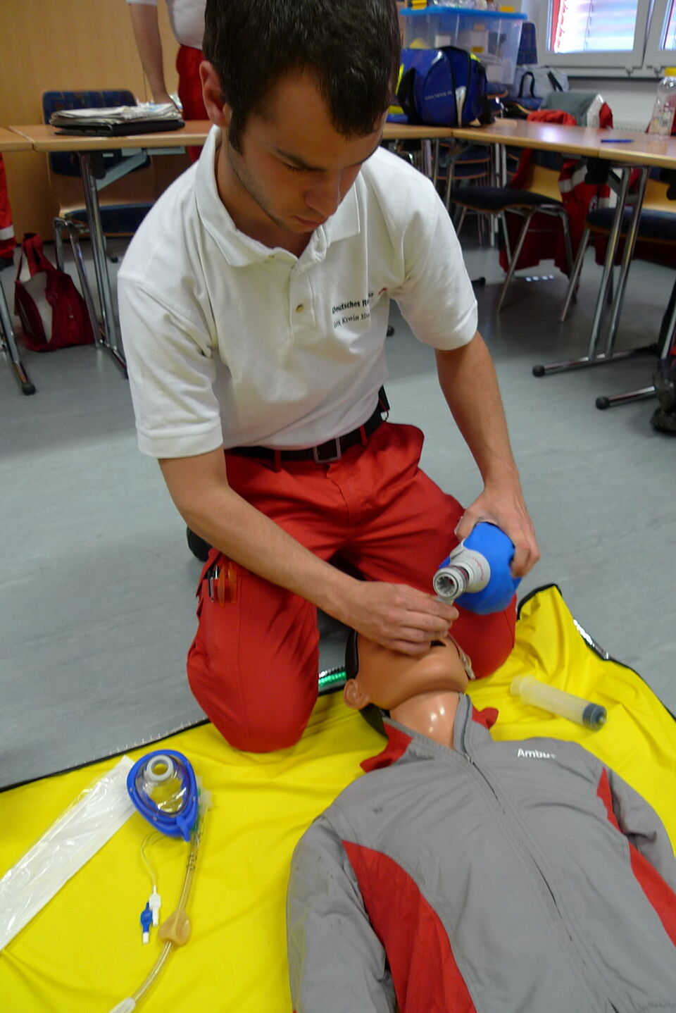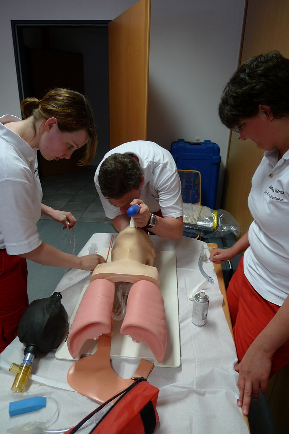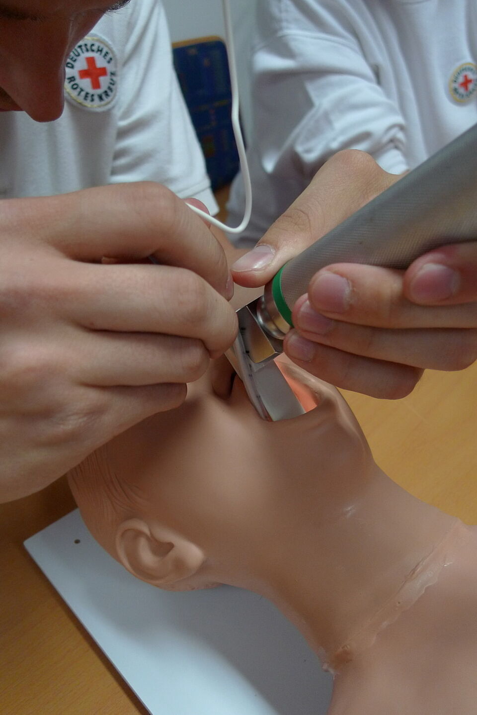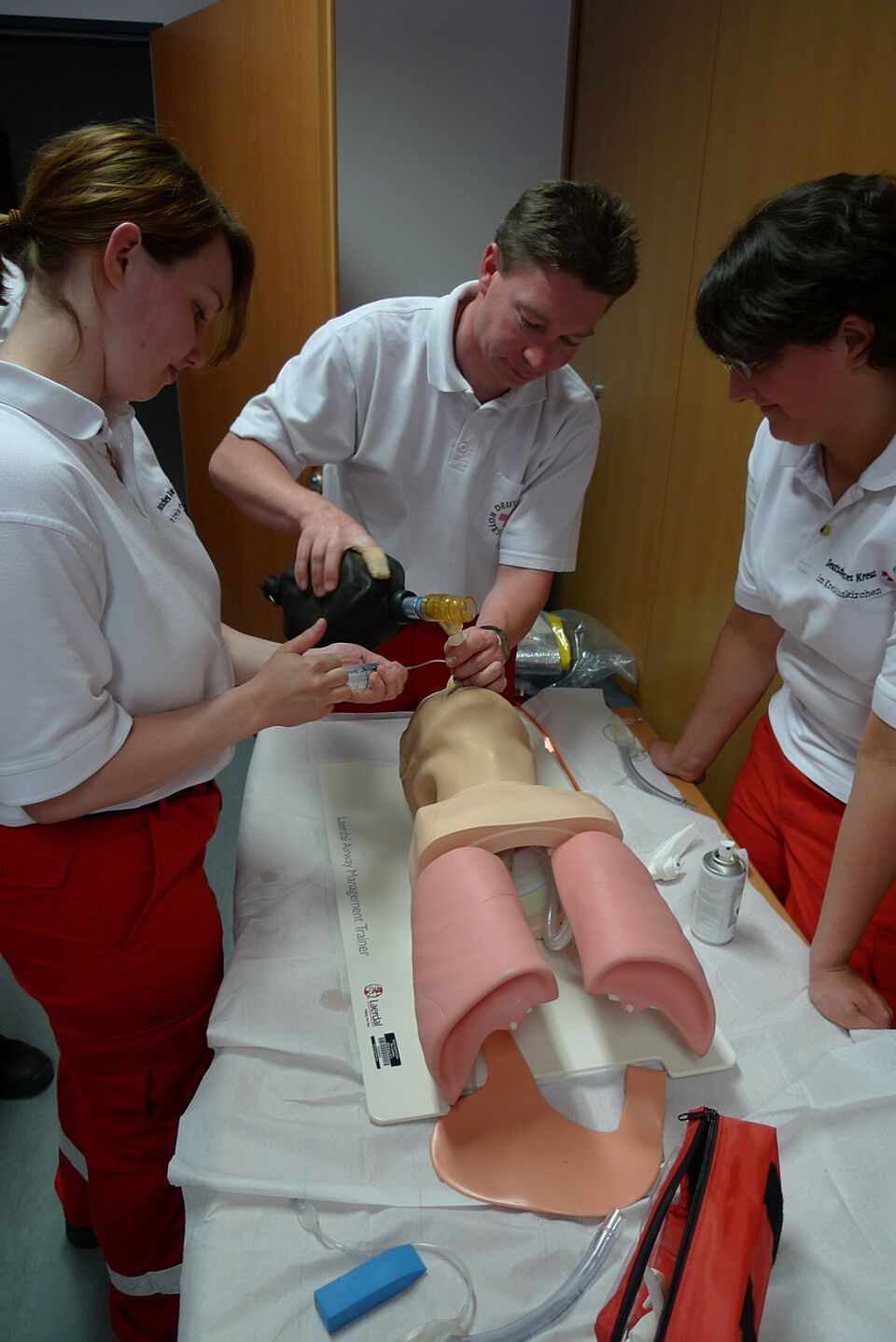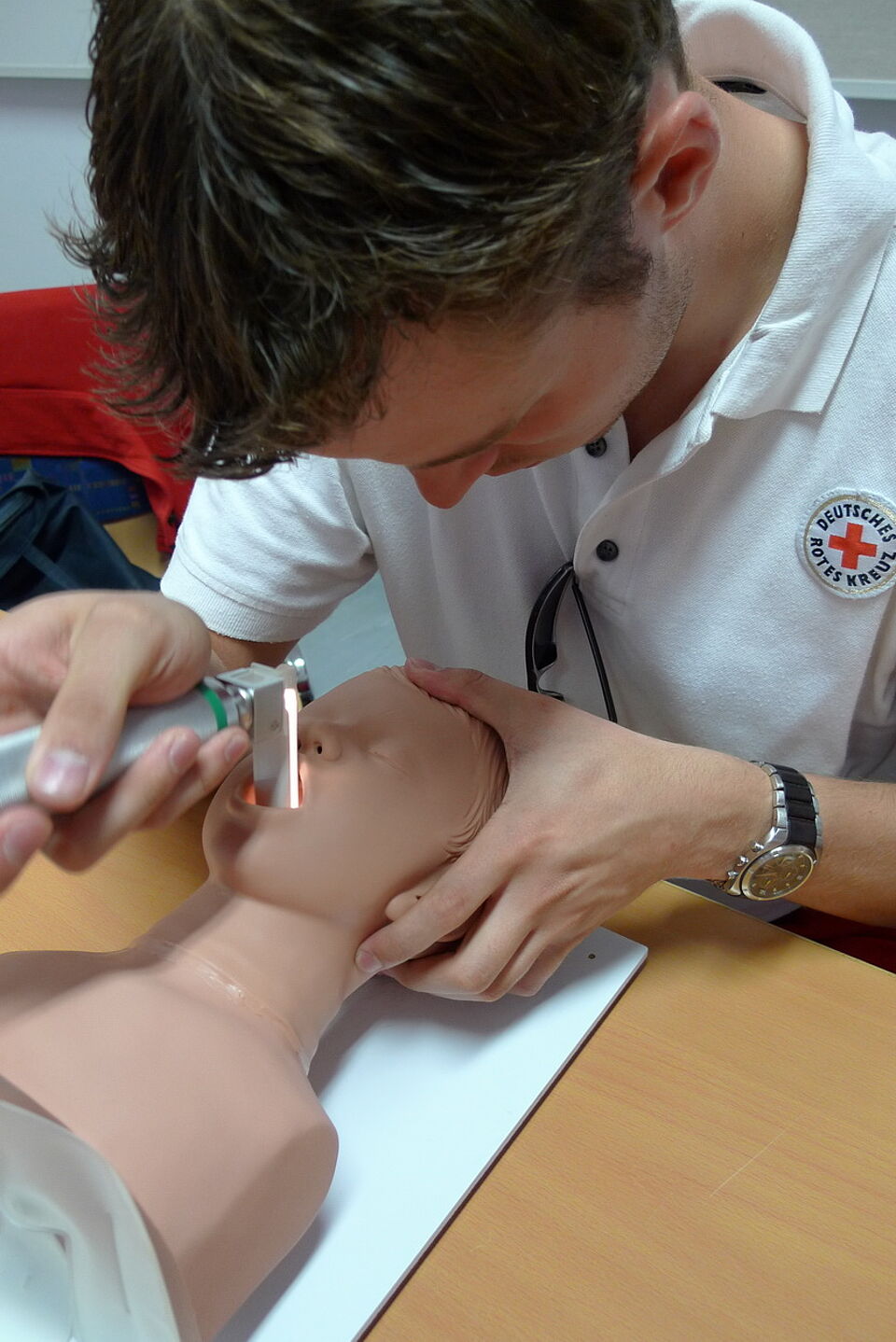 Bild DRK ZR |Die Intubation, "das Einführen eines Schlauches in die Luftröhre", konnte an kleinen Stationen trainiert werden
