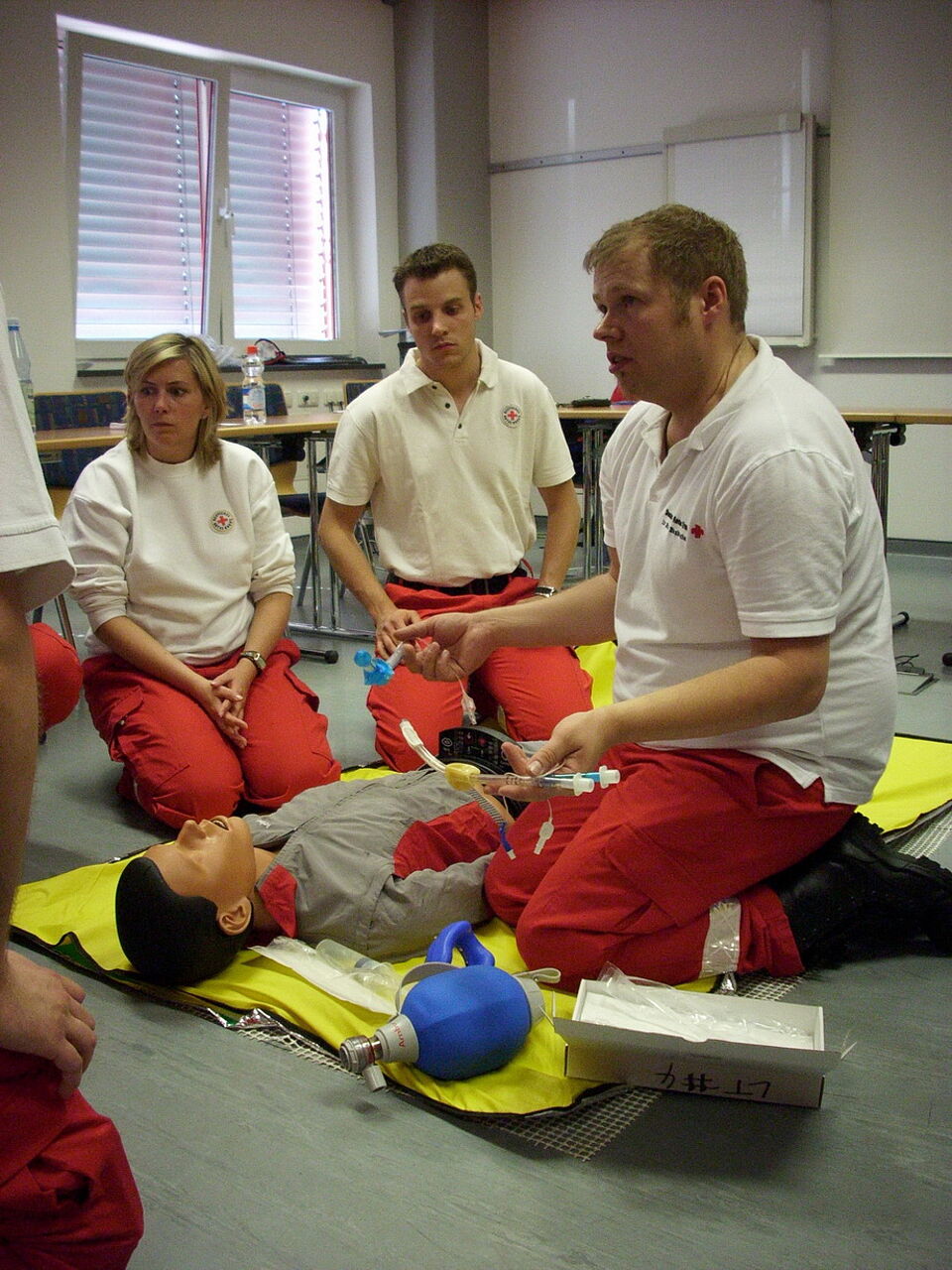 An jedem ersten Samstag im Monat wird im Rotkreuz - Zentrum in Euskirchen eine Fortbildung für die haupt- und ehrenamtlichen Rotkreuzmitarbeiter im Rettungsdienst durchgeführt.
