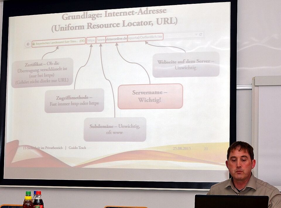 „Ziel ist es, dass die Teilnehmer anschließend mit angemessenem Aufwand mit dem Thema IT-Sicherheit umgehen können“, so Guido Tesch, „dass sie in der Lage sind, ihr IT-System (Computer, E-Mail Adresse, Internet-Anschluss) sowie ihre Daten und ihre Identität gut zu schützen und dass sie Betrugsversuche und Hacker-Angriffe erfolgreich abwehren können.“