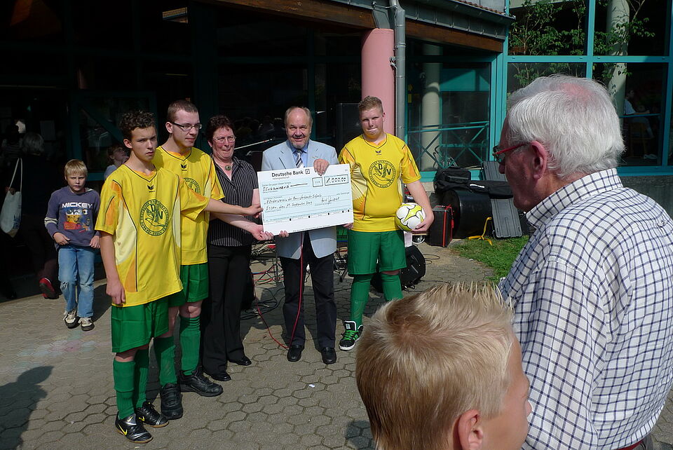Ein wesentlicher Aspekt des Festes war aber die Wohltätigkeit. "Denn ohne die zahlreichen, freundlichen Spenden wäre ein Schulbetrieb in dieser Form wohl nicht möglich", so Schulleiterin Frau Schmitz. So fördert alleine die Hilfsgruppe Eifel Klassenfahrten und nötige Anschaffungen für den Unterrichtsbetrieb mit 6000 Euro jährlich und auch der Förderverein der Brieftaubenzüchter spendete in diesem Jahr 1000 Euro. Hiervon wurden beispielsweise neue Trikots für die schuleigene Fussballmannschaft angeschafft.