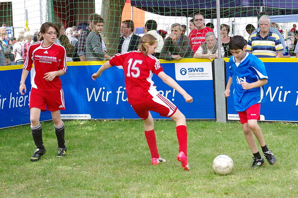 Ein weiterer Höhepunkt war das integrative Soccerturnier auf der Wiese zwischen Rotkreuzzentrum und Parkplatz der Kreisverwaltung. Zwölf Mannschaften jagten auf dem kleinen Spielfeld dem Ball hinterher. In allen Teams spielten Kicker mit und ohne Behinderung gemeinsam. „Wir achten darauf, dass in jeder Mannschaft immer mindestens ein Mitspieler mit Behinderung auf dem Platz steht“, erklärte Markus Strauch vom Kreissportbund. Insgesamt waren 64 Spieler unterwegs. Am Ende wurde jeder mit einer Urkunde und einem kleinen Preis belohnt.