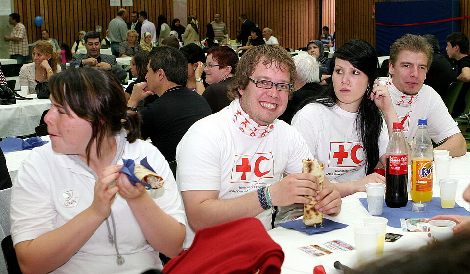 Umso erfreuter registrierten die Veranstalter, dass zwei Abordnungen des befreundeten Roten Kreuzes sich unter die Feiergesellschaft gemischt hatten. „Wir waren ganz überrascht, dass wir gleich zwei Gruppen des Roten Kreuzes als Gäste begrüßen durften. Wir hatten nur mit einer gerechnet“, freute sich Nevin Sezgin vom Organisationsteam. Und die Rotkreuzler waren nicht nur zum Mitfeiern gekommen, sondern leisteten mit Kinderschminken und der Herstellung von Buttons ihren Beitrag zum Gelingen des Festes.