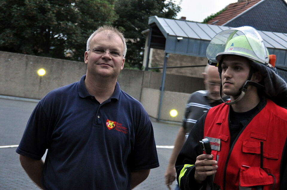 Schnell und routiniert konnten sie feststellen, dass die gesamte Tiefgarage stark verraucht war. Zudem wurden noch Personen in der Tiefgarage vermisst, wie der herbeigeeilte Hausmeister mitteilte. Unter schwerem Atemschutz suchten mehrere Einsatztrupps das Gelände ab. Die vermisste Person konnte schnell gefunden und gerettet werden.
