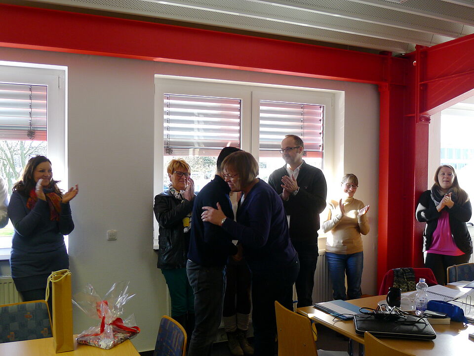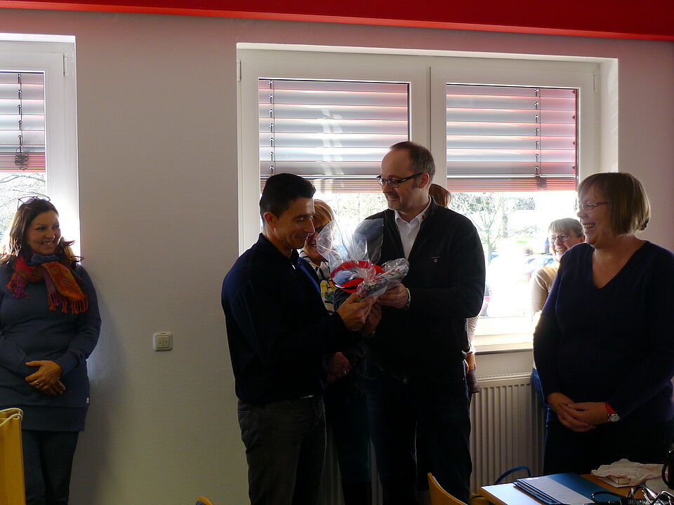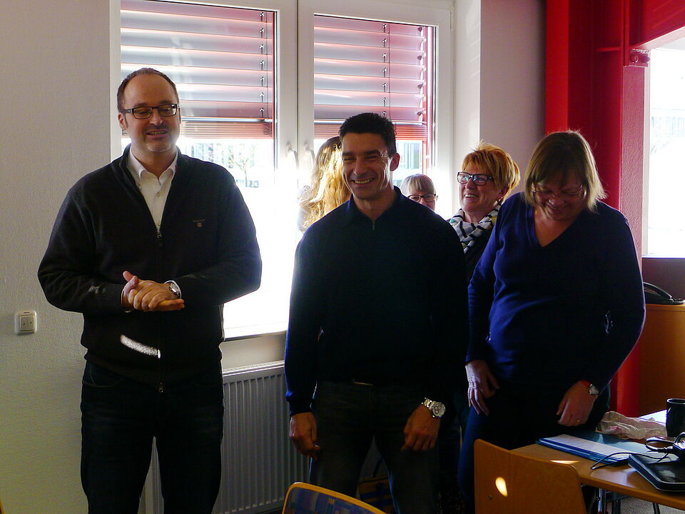 Euskirchen - In einer kleinen Feierstunde wurde am Freitag unser langjähriger Kollege Bodo Froebus durch den Kreisgeschäftsführer Rolf Klöcker, Vorstandsmitglied Edeltraud Engelen, den gesamten Betriebsrat und allen Kollegen feierlich verabschiedet. Er verlässt den Kreisverband auf eigenen Wunsch um sich nochmal beruflich umzuorientieren.