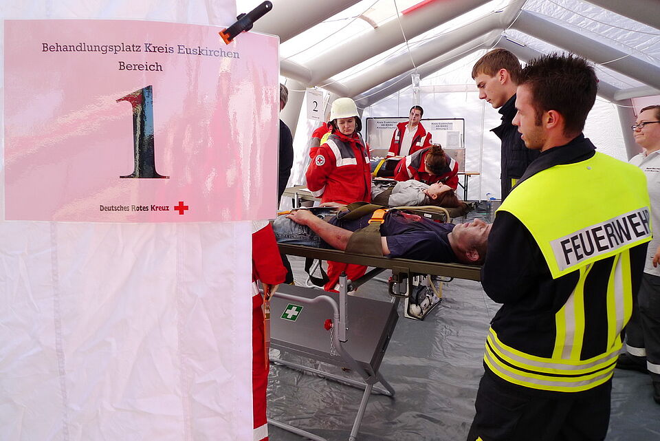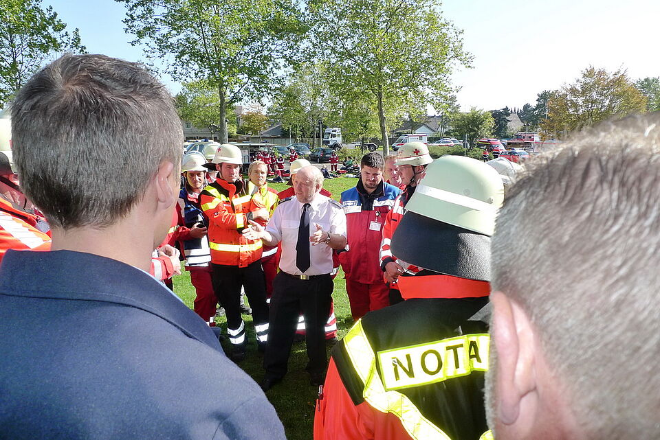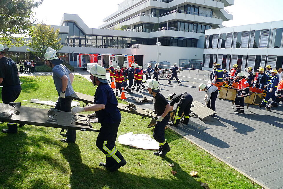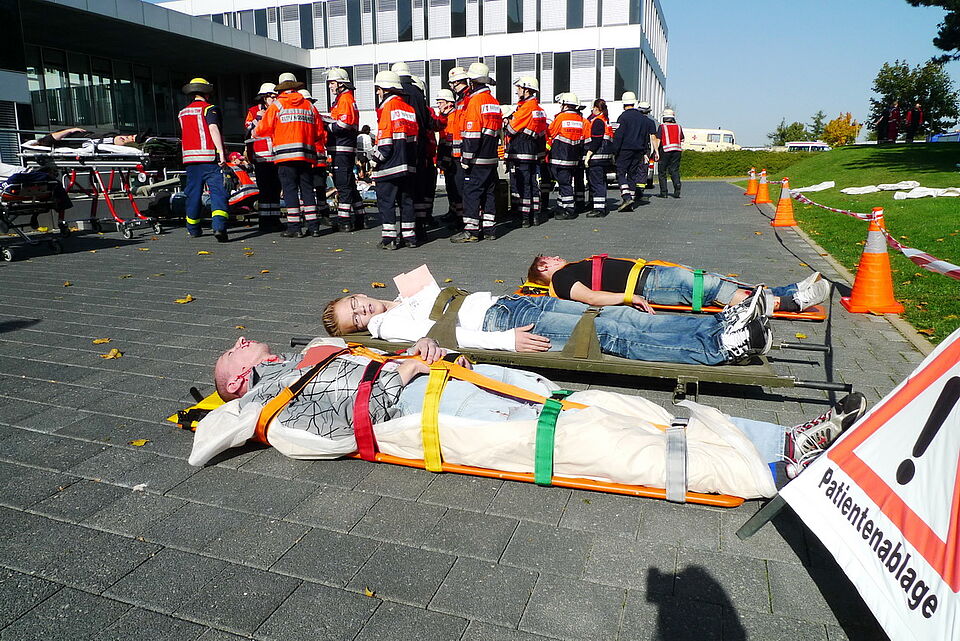 Bei der Übung für Leitende Notärzte und Organisatorischen Leiter waren rund 60 Mimen beteiligt, die von Feuerwehr, Malteser, Technisches Hilfswerk und dem Deutschen Roten Kreuz in guter Zusammenarbeit "versorgt" wurden.en.