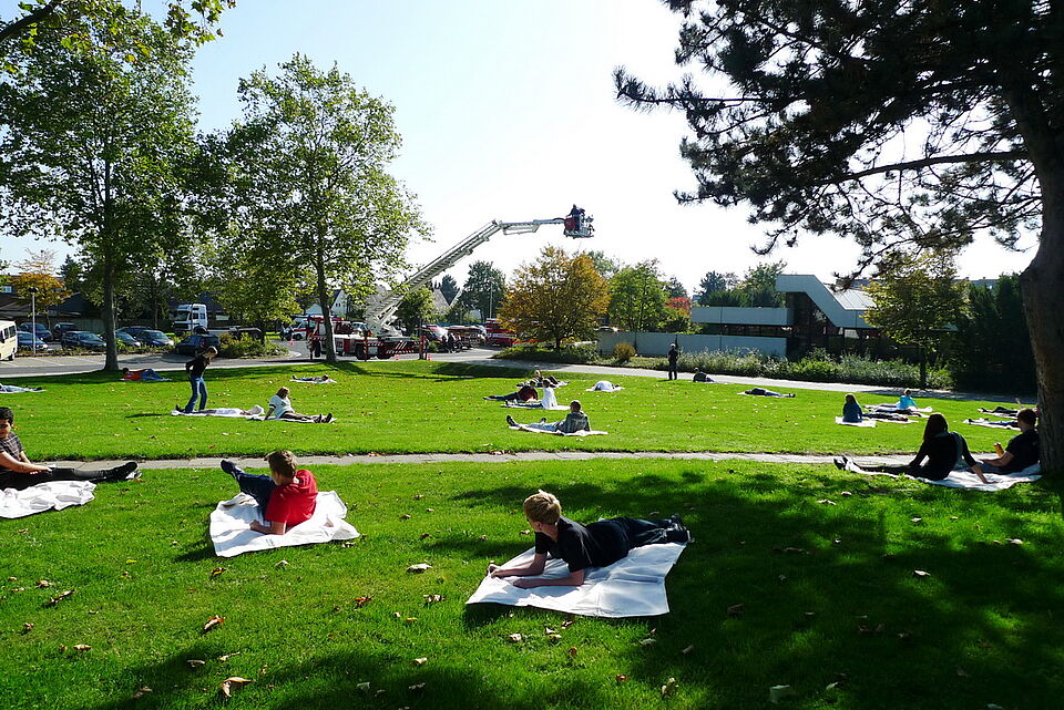 Lautes Geschrei ertönte gegen 13.20 Uhr auf dem Gelände vor der Kreisverwaltung in Euskirchen: Glücklicherweise war es nur eine Übung. Es wurde das Szenario einer Explosion der Kreisverwaltung nachgespielt.