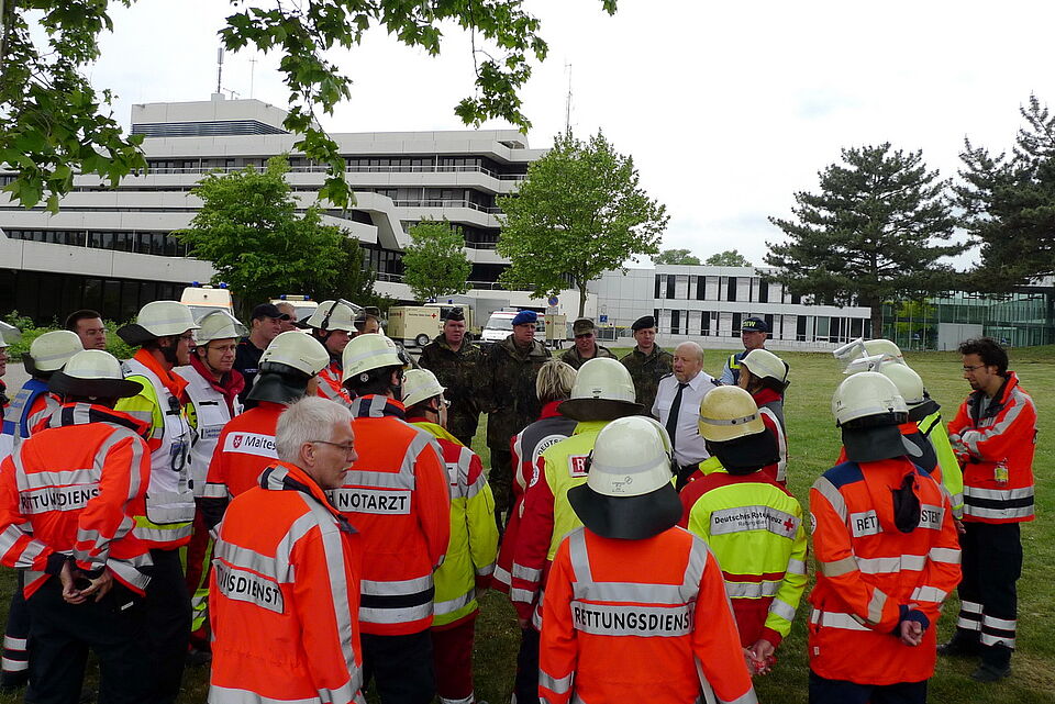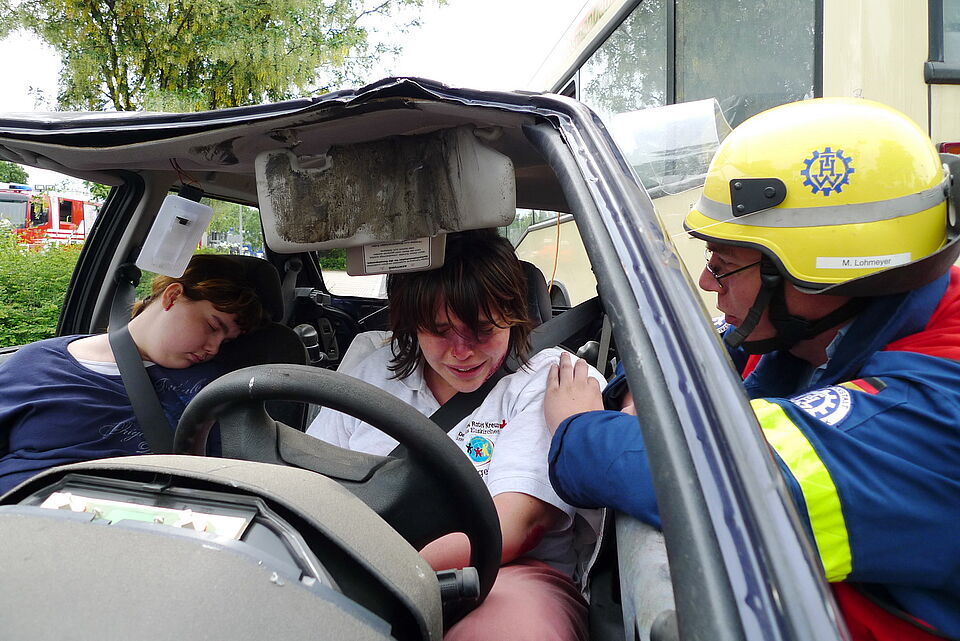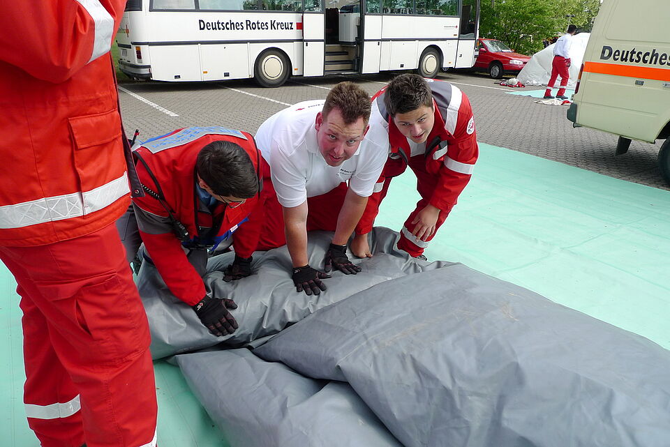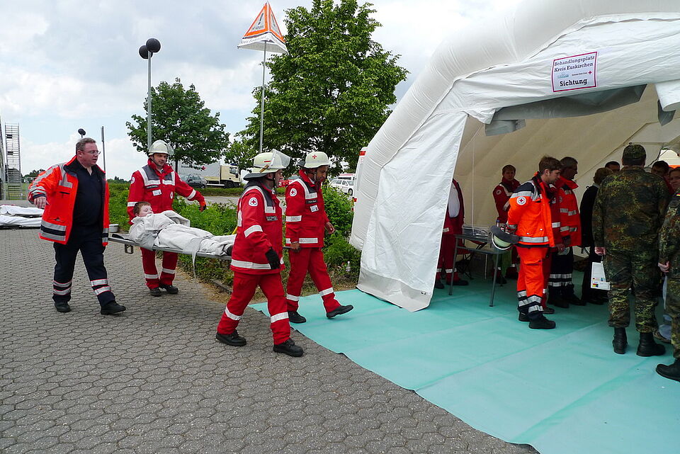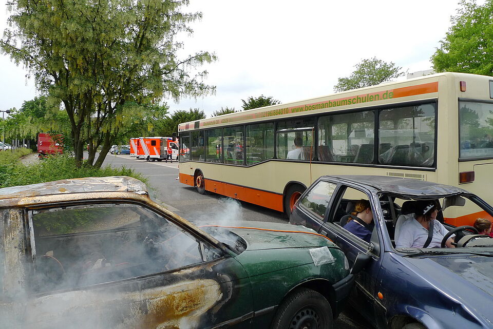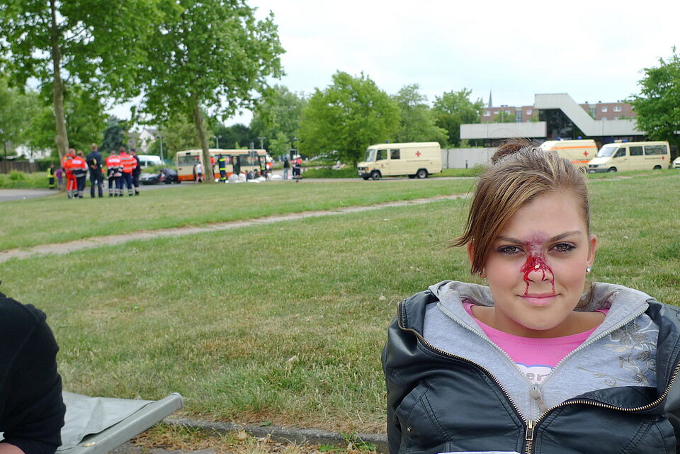 Viele "Verletzte" befanden sich am Sonntag auf dem Gelände zwischen der Kreisverwaltung und dem Rotkreuz-Zentrum. "Verkehrsunfall mit zwei PKW und einem Bus!" - so lautete das Szenario für die Großübung der Leitenden Notärzte (LNA-Übung)...