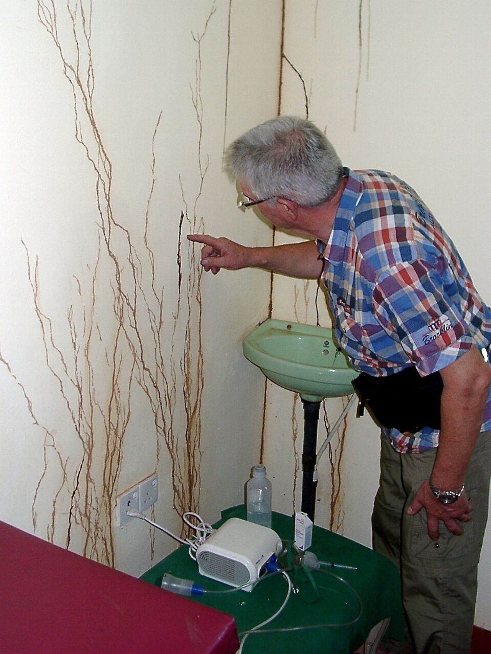 Neben der Verteilung galt es noch ganz andere Aufgaben zu bewältigen. Beim Besuch der von Eifel-Aid errichteten Krankenstation staunte Winfried Dederichs nicht schlecht über das seltsame Muster an den Wänden. „Ich dachte im ersten Moment, das sind Wandmalereien.“ Bei näherer Betrachtung entpuppten sich die bizarren Linien allerdings als Ameisenstraßen. „Der Befall mit den kleinen weißen Ameisen war so massiv, dass wir einen Kammerjäger beauftragen mussten“, so Dederichs. Ein Arzt und zwei Mitarbeiter kümmern sich im „Eifel-Dispensary-Medical Center“ die halbe Woche um 80 Patienten täglich. An den anderen Tagen dient die Krankenstation der Gesundheitsvorsorge, indem die Menschen dort in Hygiene, Zahnpflege und Schwangerschaftsvorsorge geschult werden. Außerdem ist in dem Gebäude auch eine Apotheke eingerichtet.