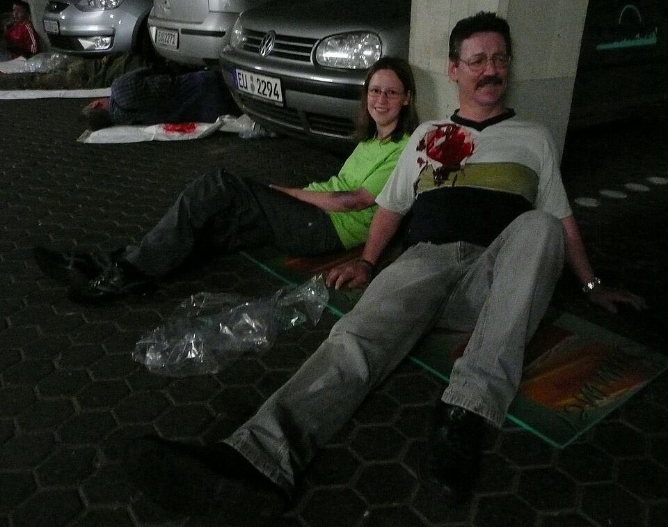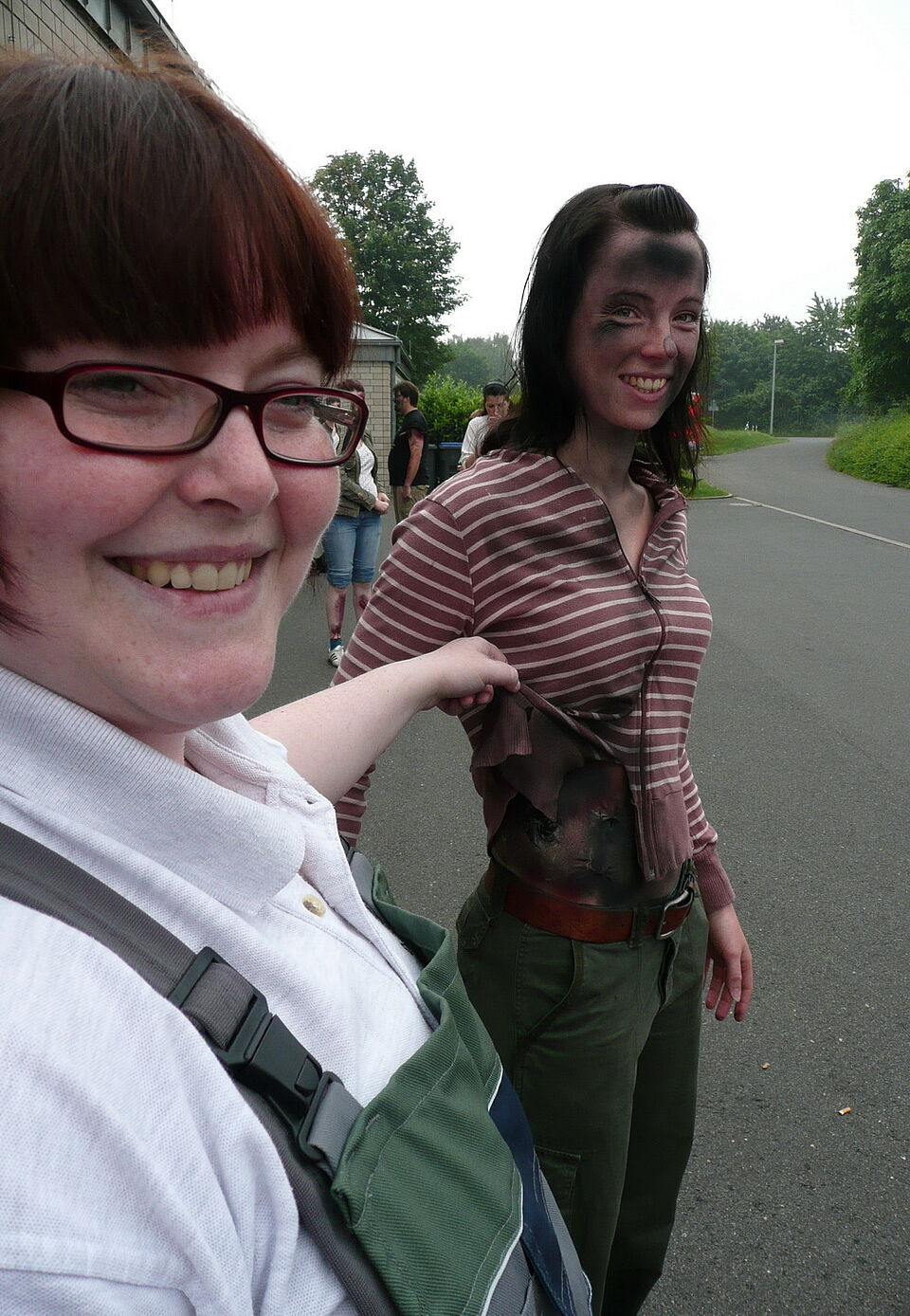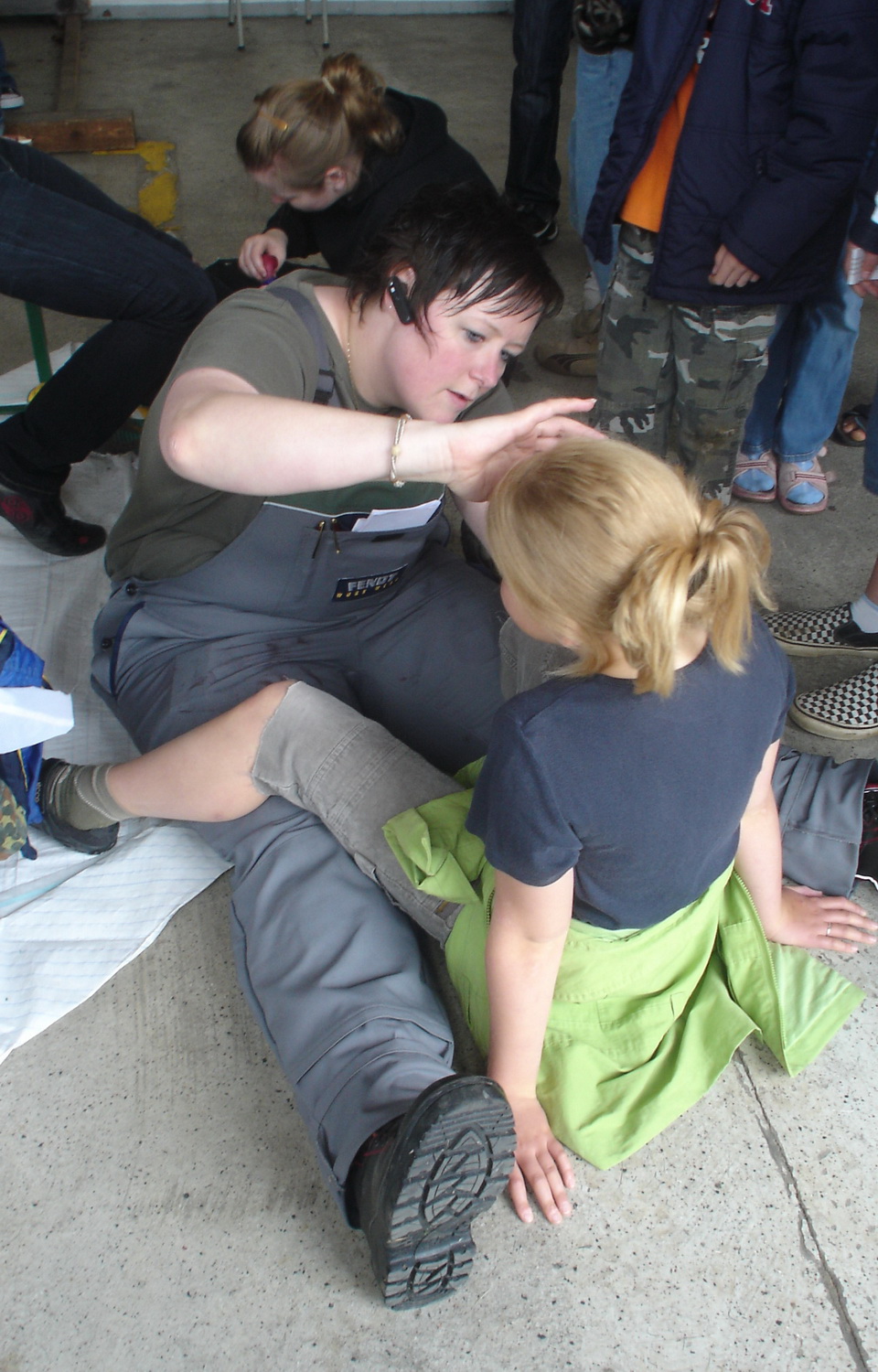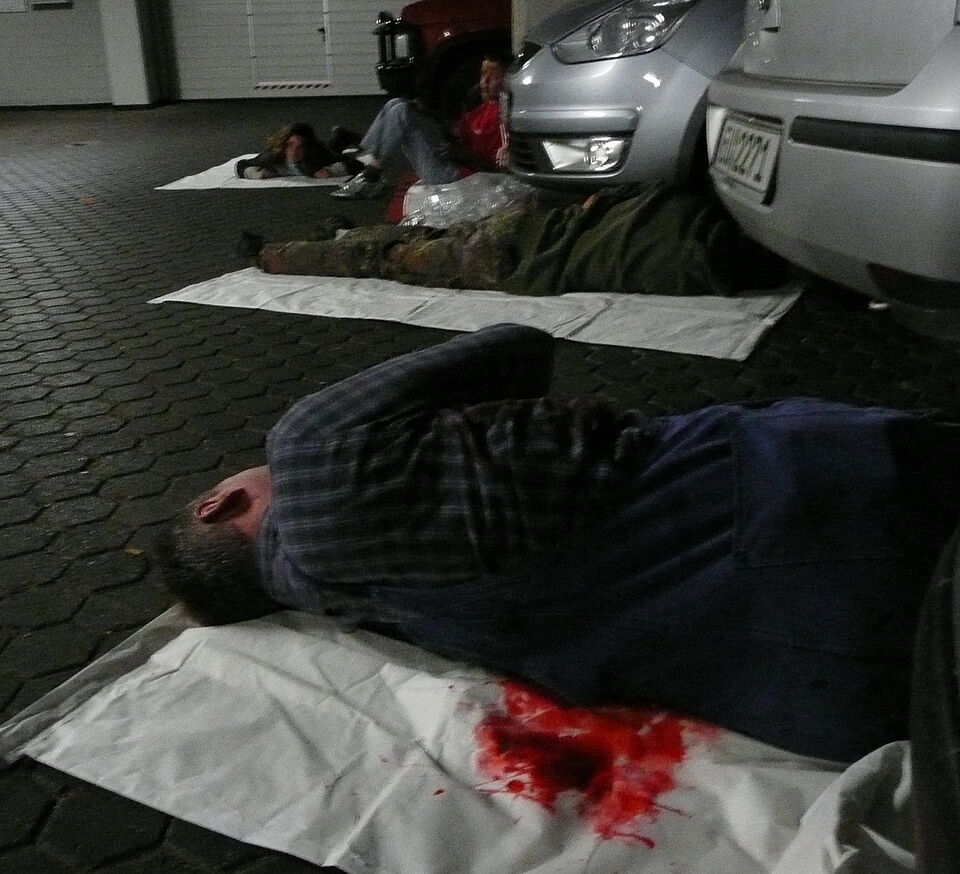 Nach einer fast dreistündigen Arbeit der (RUD) Gruppe waren die Darsteller für die Übung vorbereitet. Sie wurden in den Hintergrund der Übung "eingeweiht" und auf ihre Rolle als Verletztendarsteller vorbreitet.