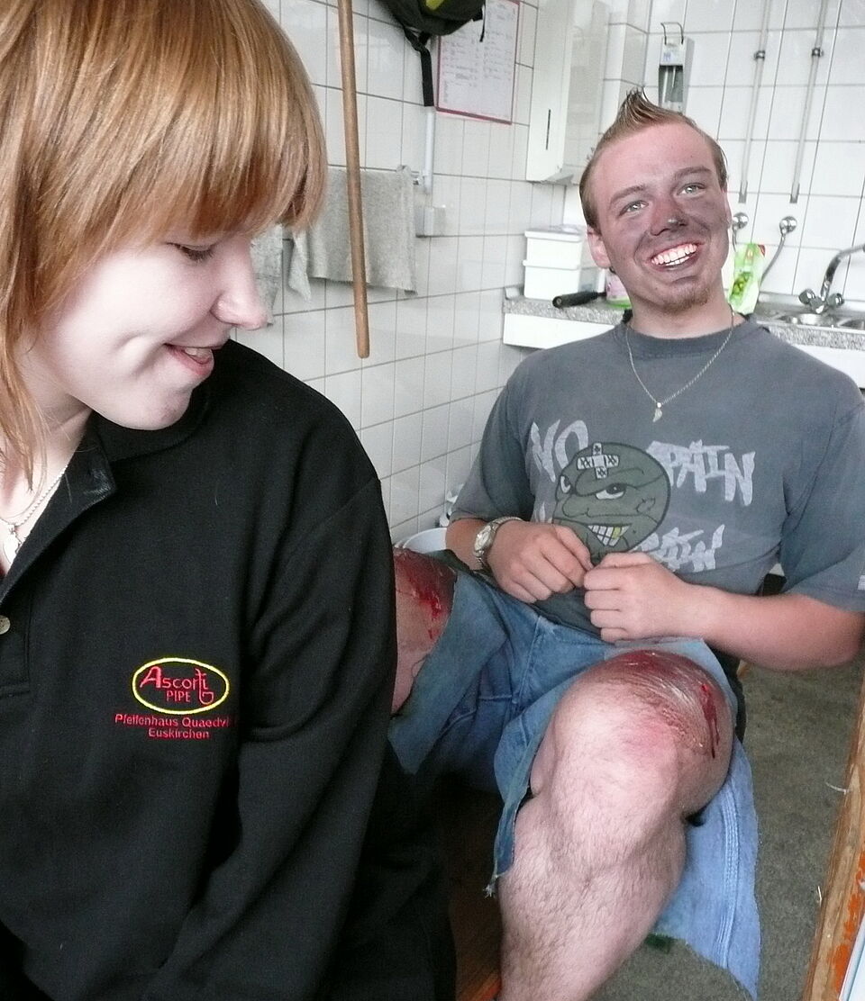 Auch bei dieser Übung des Rettungsdienstes im Kreis Euskirchen wurde wieder einmal klar wie wichtig eine gute Darstellung der Verletzungen ist. So bekamen die eingesetzten Helfer von Rotem Kreuz, Malteser, technischem Hilfswerk und die Feuerwehrleute ein täuschend echtes Katastrophenbild und eine gute Voraussetzung für ihre Übung.