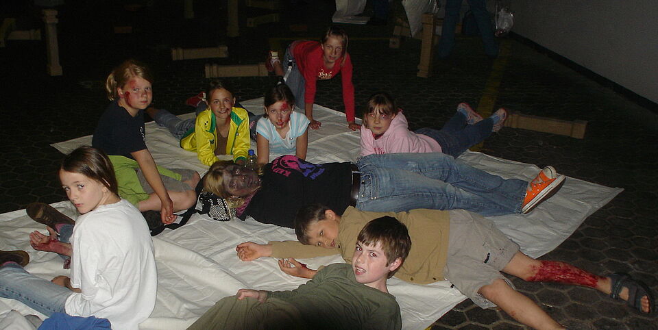 Bild DRK ZR | Überall lagen die "Verletzten" und lautes Stöhnen und Schreien erfüllte den Raum.