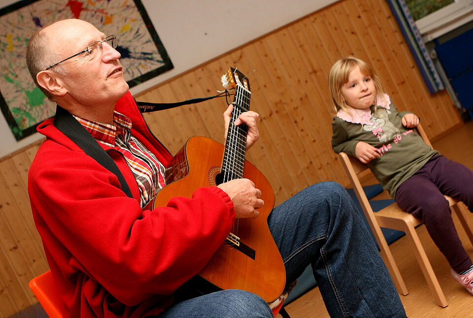 „Wir sind keine ausgebildeten Singpaten, aber wir haben jahrzehntelange Erfahrung beim Singen mit Grundschülern“, berichtet Charlotte Roux-Bücker: „Wir lehnen uns in den Gesangsstunden hier im Kindergarten an das Projekt »Canto elementar« an.“