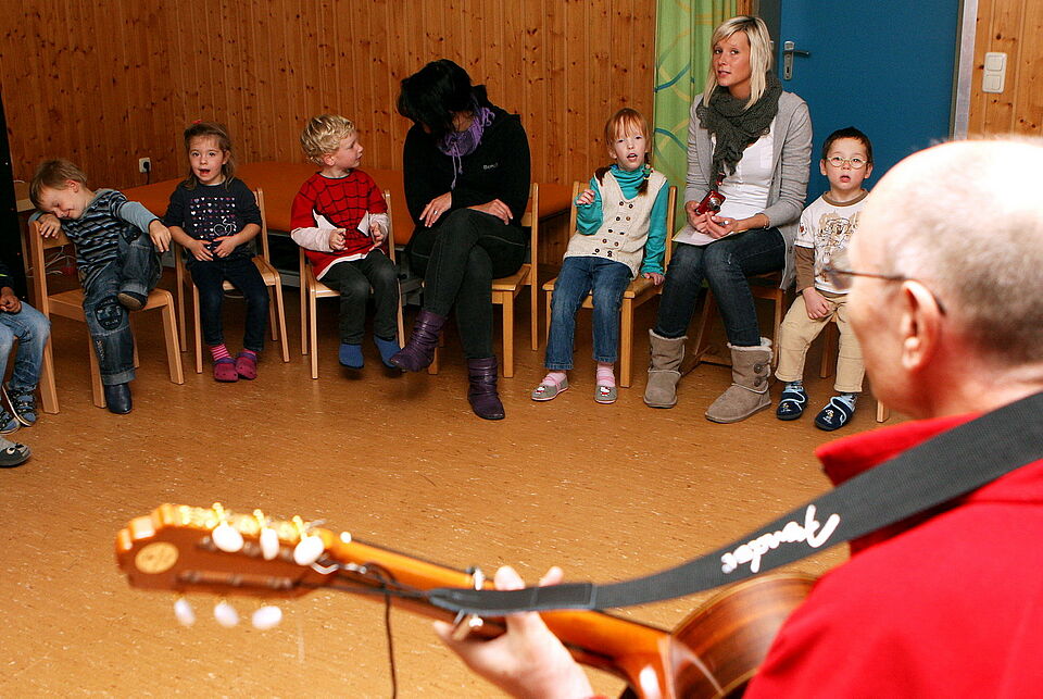 Grundschullehrer-Ehepaar Brücker musiziert und animiert im Rotkreuz-Kindergarten Malsbenden ehrenamtlich – „Kraftfutter für Kinderhirne“ – Rotkreuz-Kindergartenleiterin Annelise Schmitz ist begeistert
