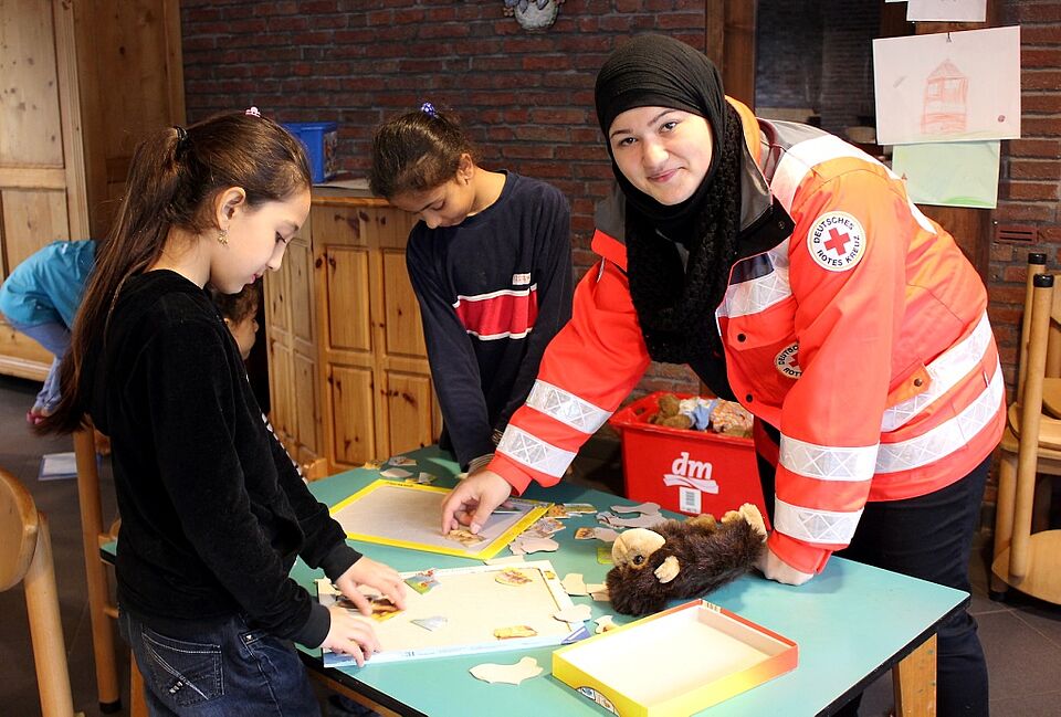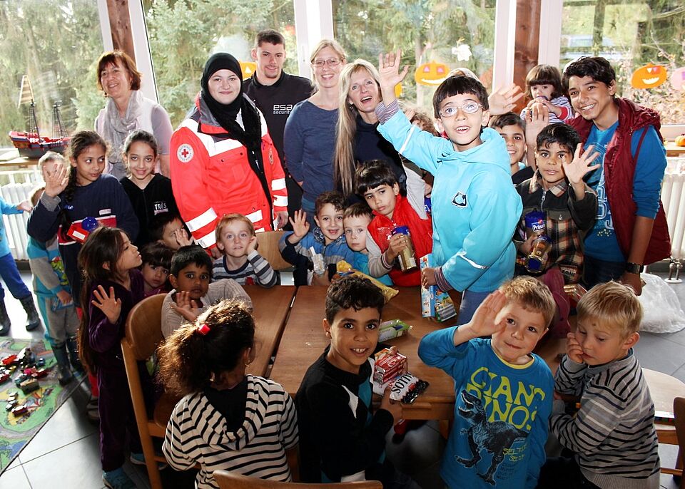 Gemünd – „Wir wollten einfach auch etwas beitragen und ein positives Signal setzen“, sagt Andrea Wollgarten, Leiterin des Gemünder Rotkreuz-Familienzentrums. Sie war gemeinsam mit ihren Kolleginnen und einer Gruppe Kinder ins Schullandheim gekommen, um Flüchtlingskinder, die dort in der Notunterkunft leben, mit Süßigkeiten zu überraschen. Die Menschen dort werden rund um die Uhr betreut vom Roten Kreuz im Kreis Euskirchen.